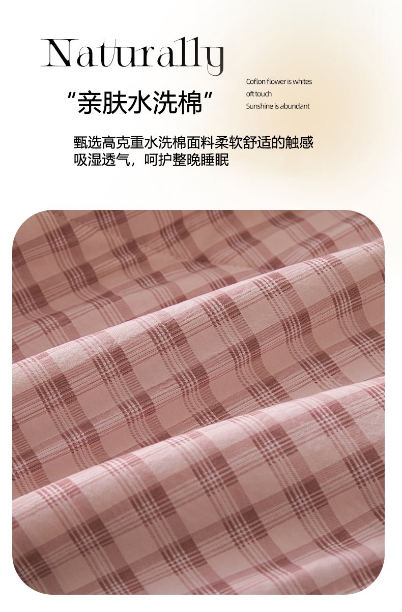 (总)寐眠 2023新款全棉色织水洗棉儿童夏被,粉大格,粉小格,灰白格,蓝大格,蓝小格,雾蓝格,小粉格