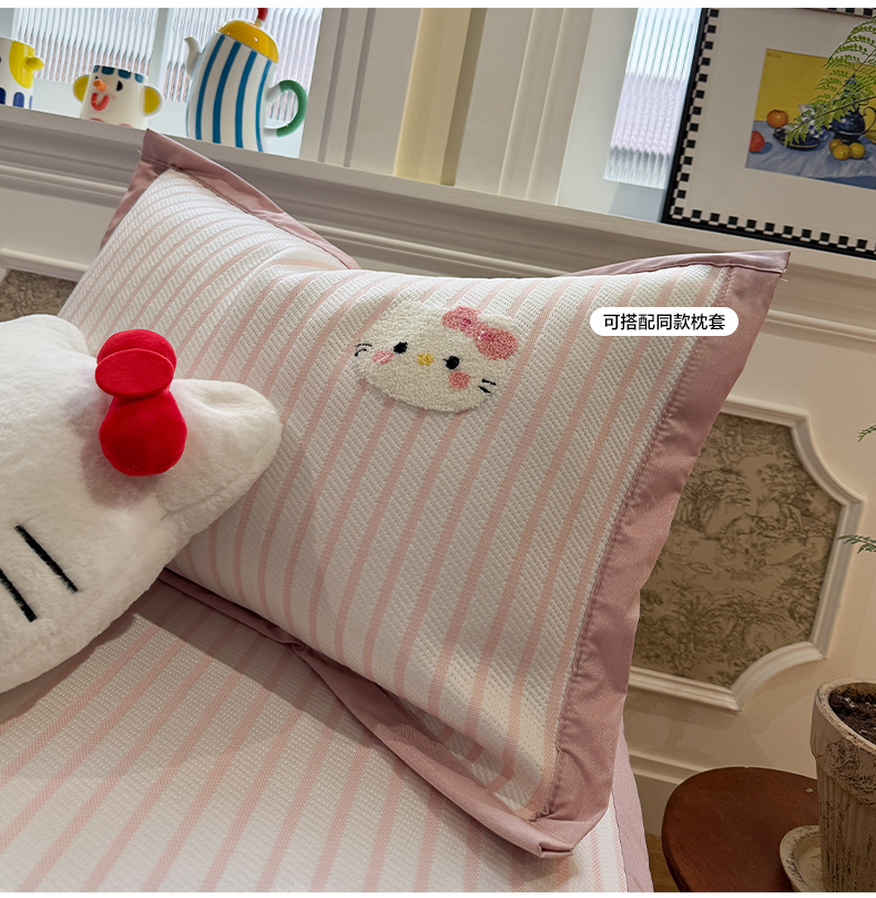 (总)雅居纺家纺 2026新款PE凉感卡通床裙床盖凉席韩版花边加厚三明治底PE凉感席,粉色猫咪家族,粉色星星腊肠狗,萌萌苹安果,汪星人,夏日苹果狗,幸运酷熊