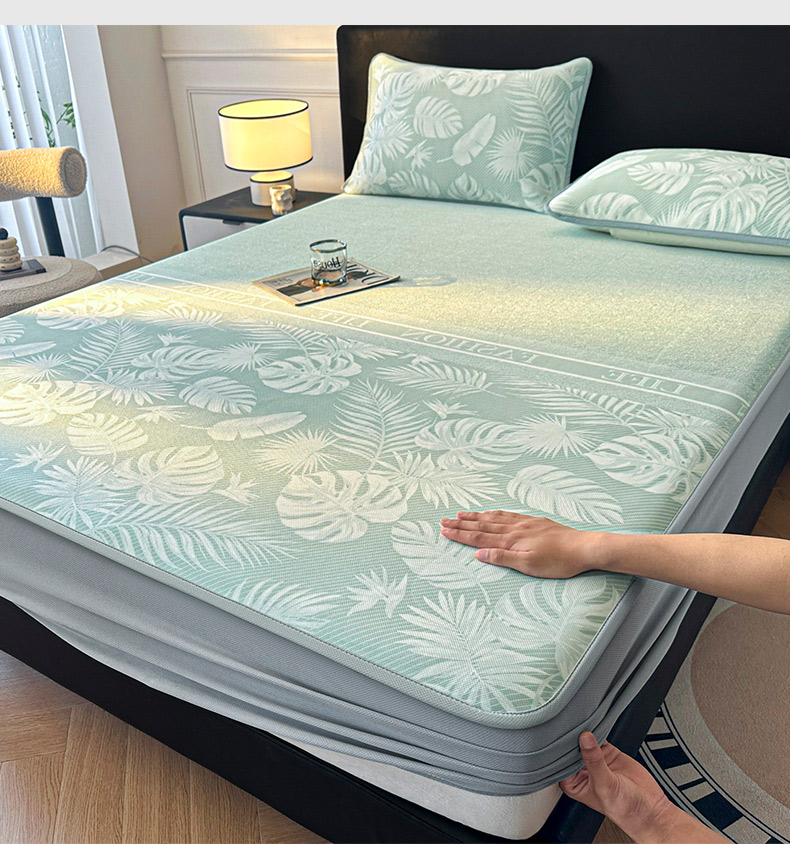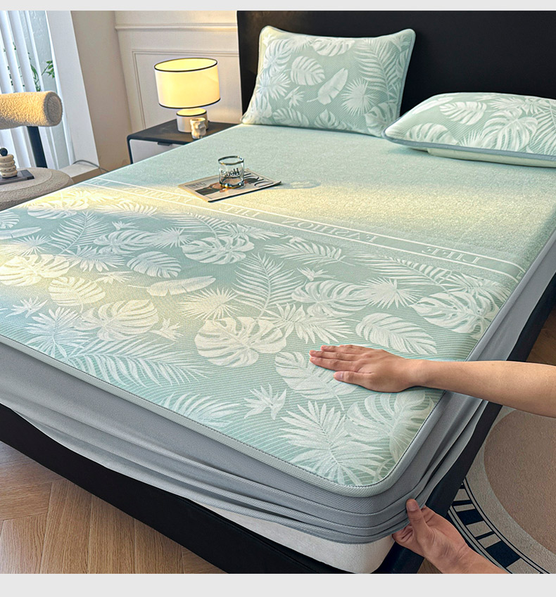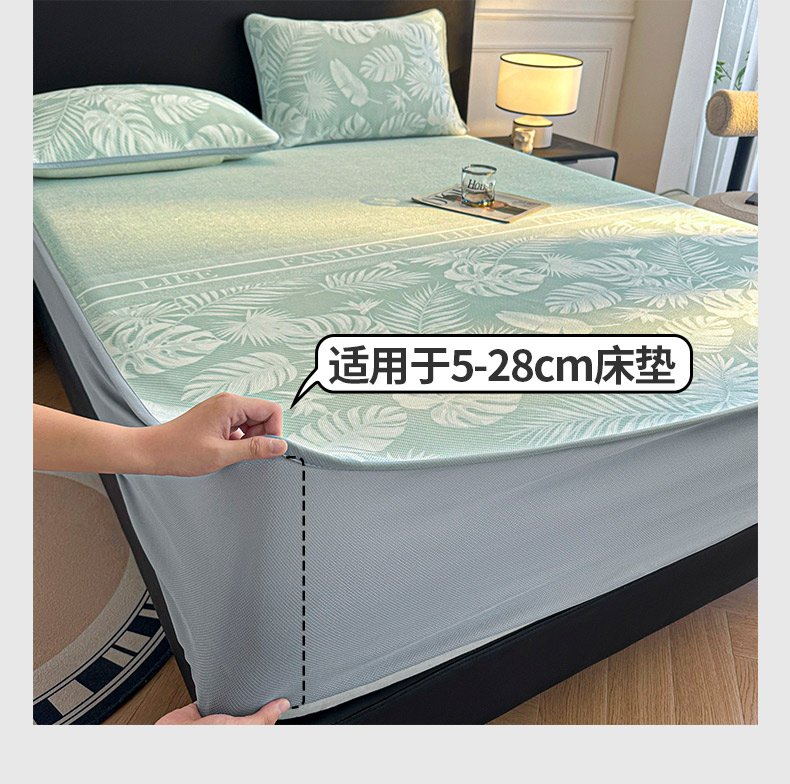 可恩欣 2026新款冰丝提花软床笠单品床笠床笠单件 轻叶-绿