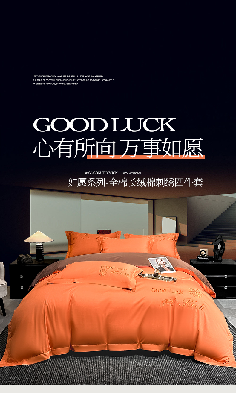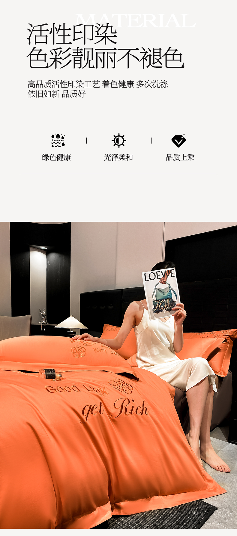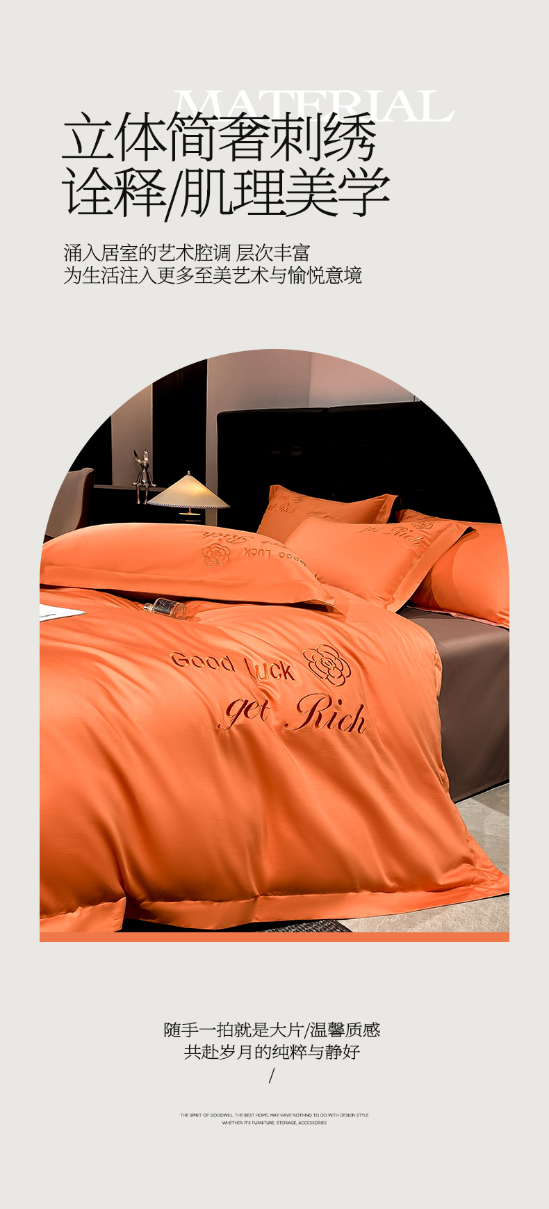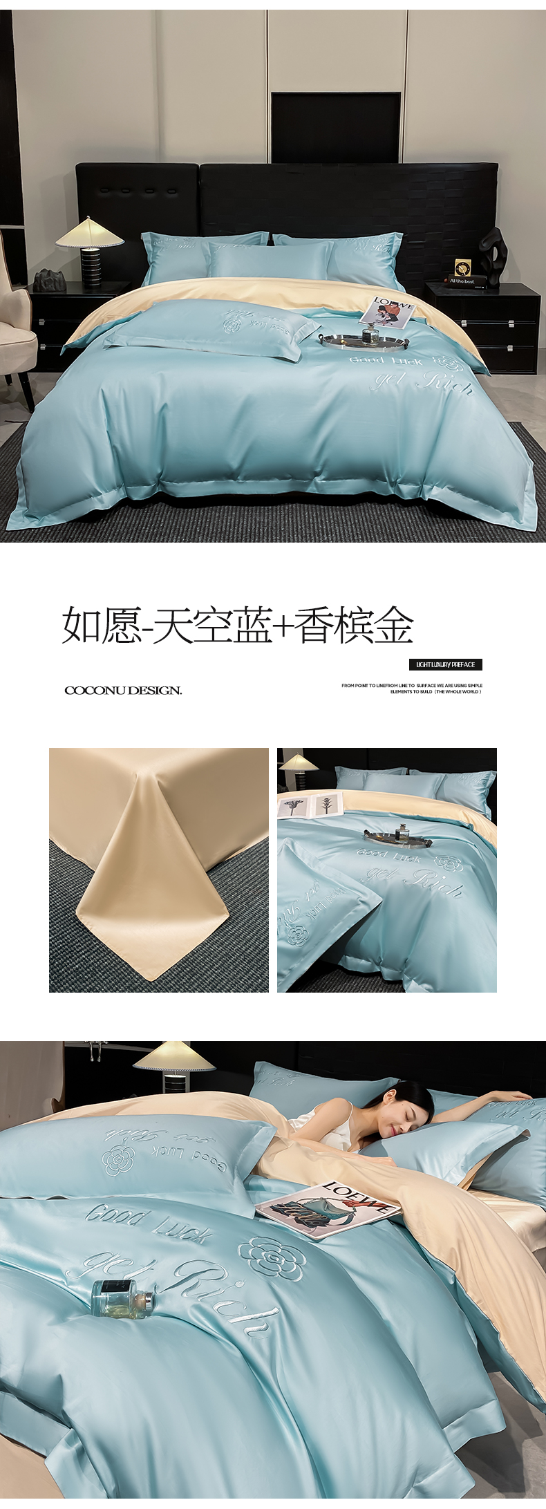 (总)润锦云 2026新款100s全棉长绒棉纯棉刺绣四件套-如愿,如愿-爱玛橙+摩卡棕,如愿-典雅灰+香槟金,如愿-芙蓉粉+星黛紫,如愿-天空蓝+香槟金,如愿-香芋紫+香槟金