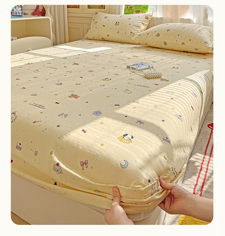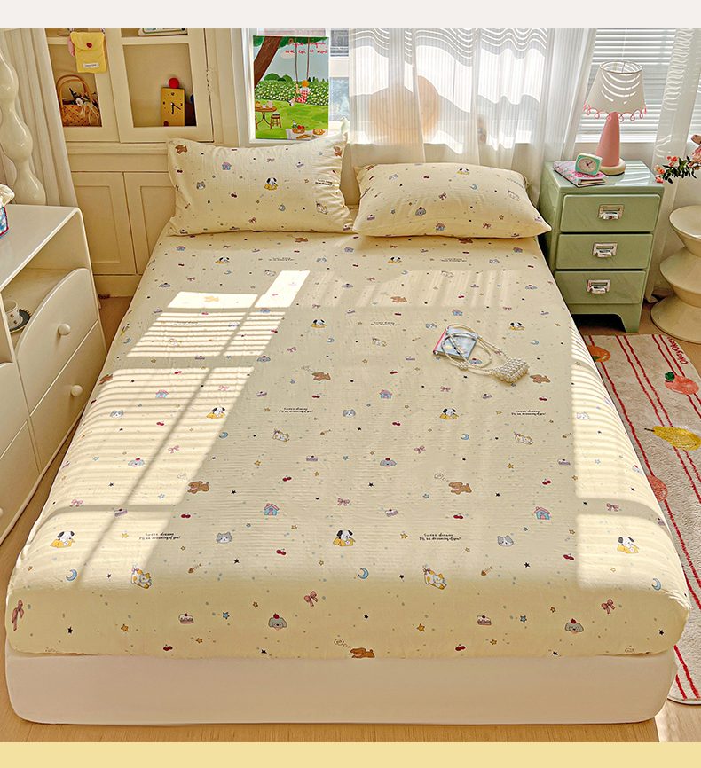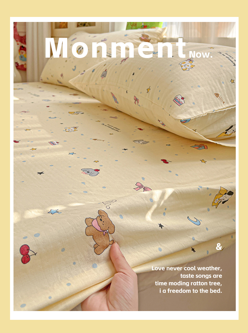 • 91家纺网 家纺一手货源 找家纺 名兮家居 2026新款全棉纯棉A类卡通时尚风双层纱床笠单品床笠床笠单件 双层纱-狗狗幻想