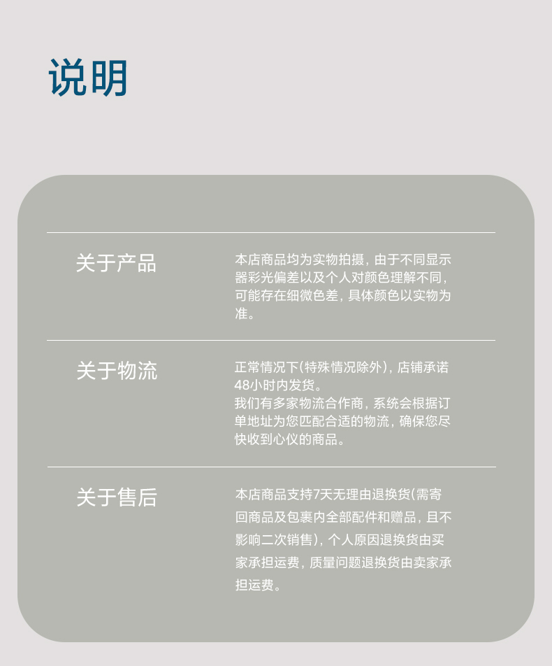 云仓服务3:享急速发货,18点之前下单,2小时内发货,保证发货时效;