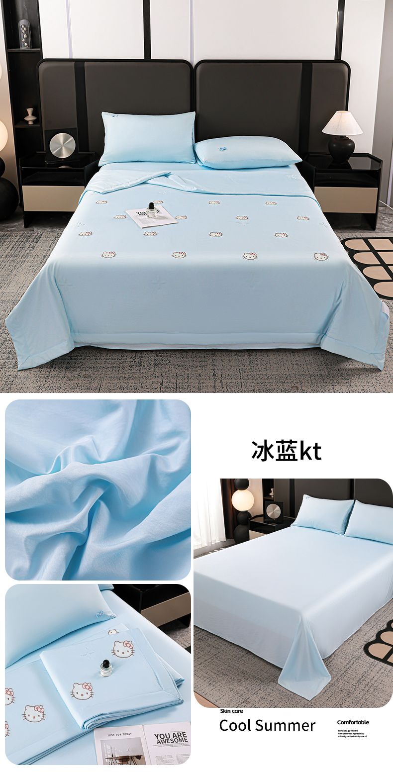 (总)佳鸿家纺 2026新款A类凉感冰柔丝刺绣手包边夏凉被夏被四件套 提供质检报告,薄荷樱桃,冰蓝kt,粉蓝kt,粉紫蝴蝶结,灰紫蝴蝶结,咖+灰小熊,奶咖小熊