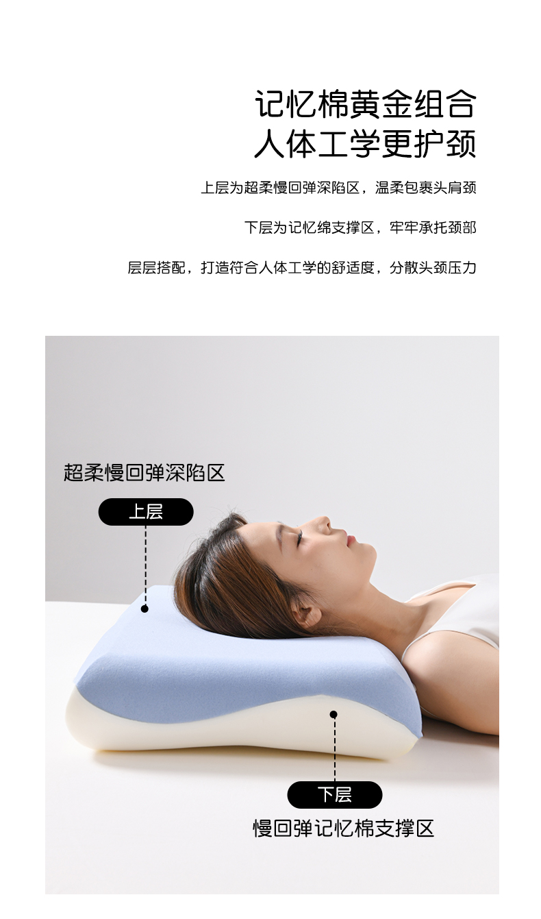 (总)圣靓家纺 2026新款零压力记忆枕某朵同款酒店记忆棉枕芯深睡眠云朵双芯蓝白Pro零压记忆棉枕头,云朵护颈pro第二代记忆枕,礼盒