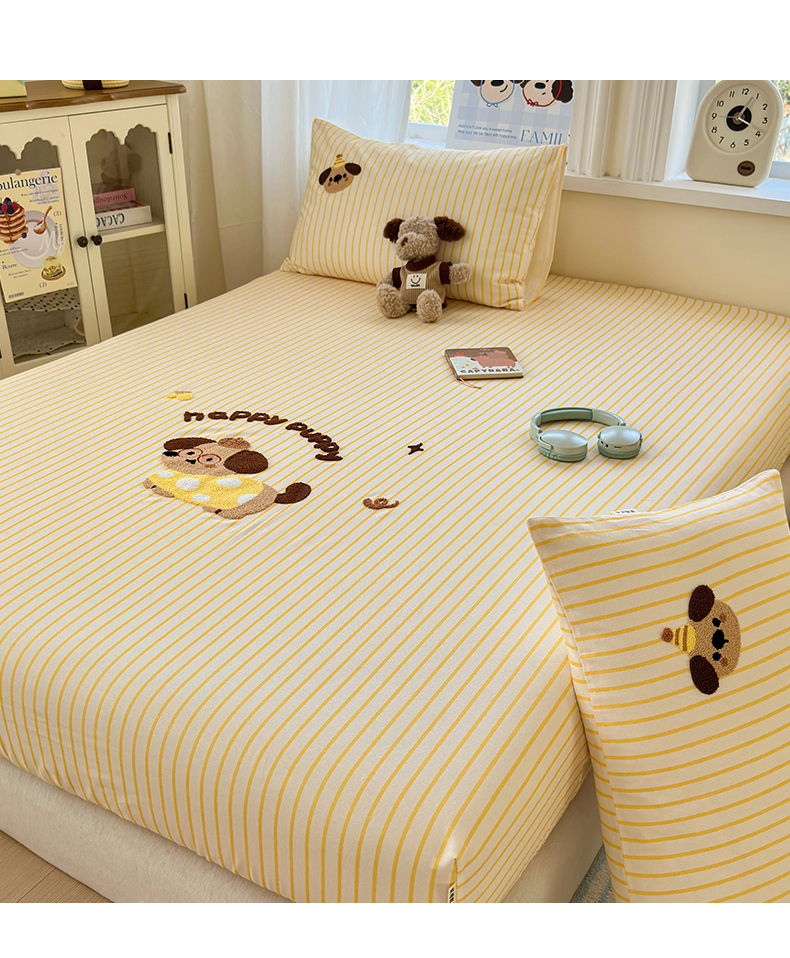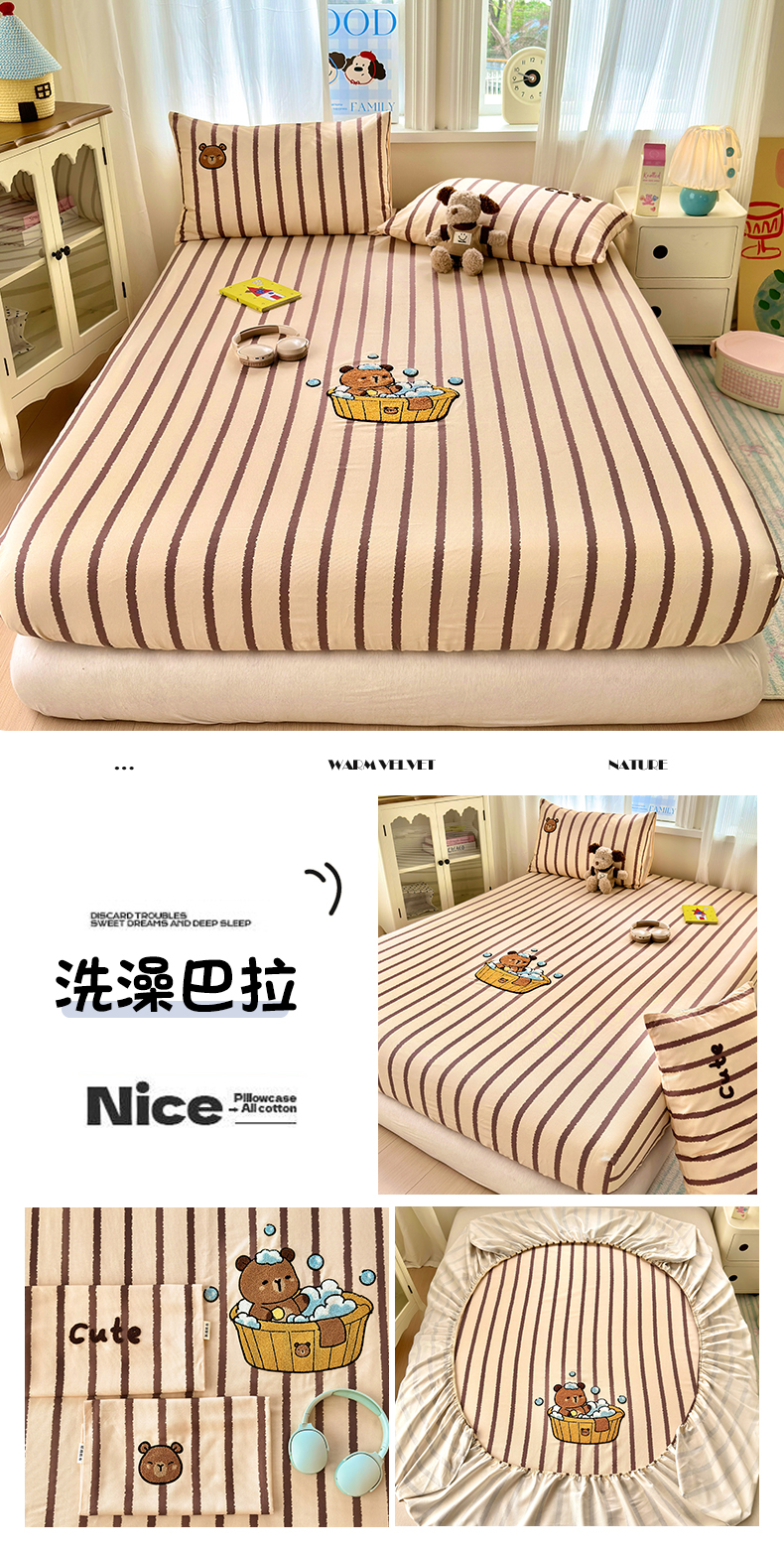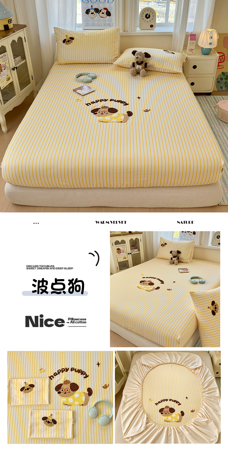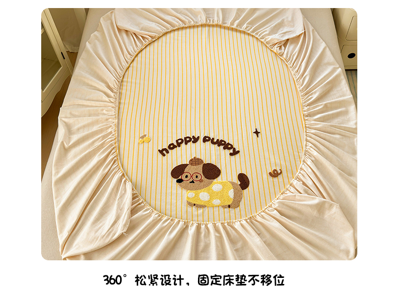 (总)沐棉家居 2026新款毛巾绣老粗布全棉纯棉床笠单品床笠单件,豹纹巴拉,波点狗,条纹巴拉,洗澡巴拉,幸福狗