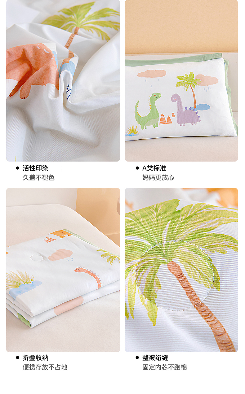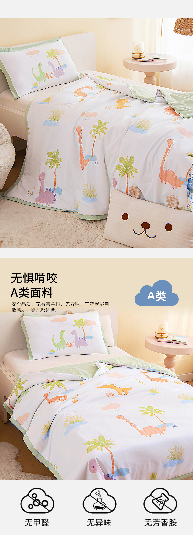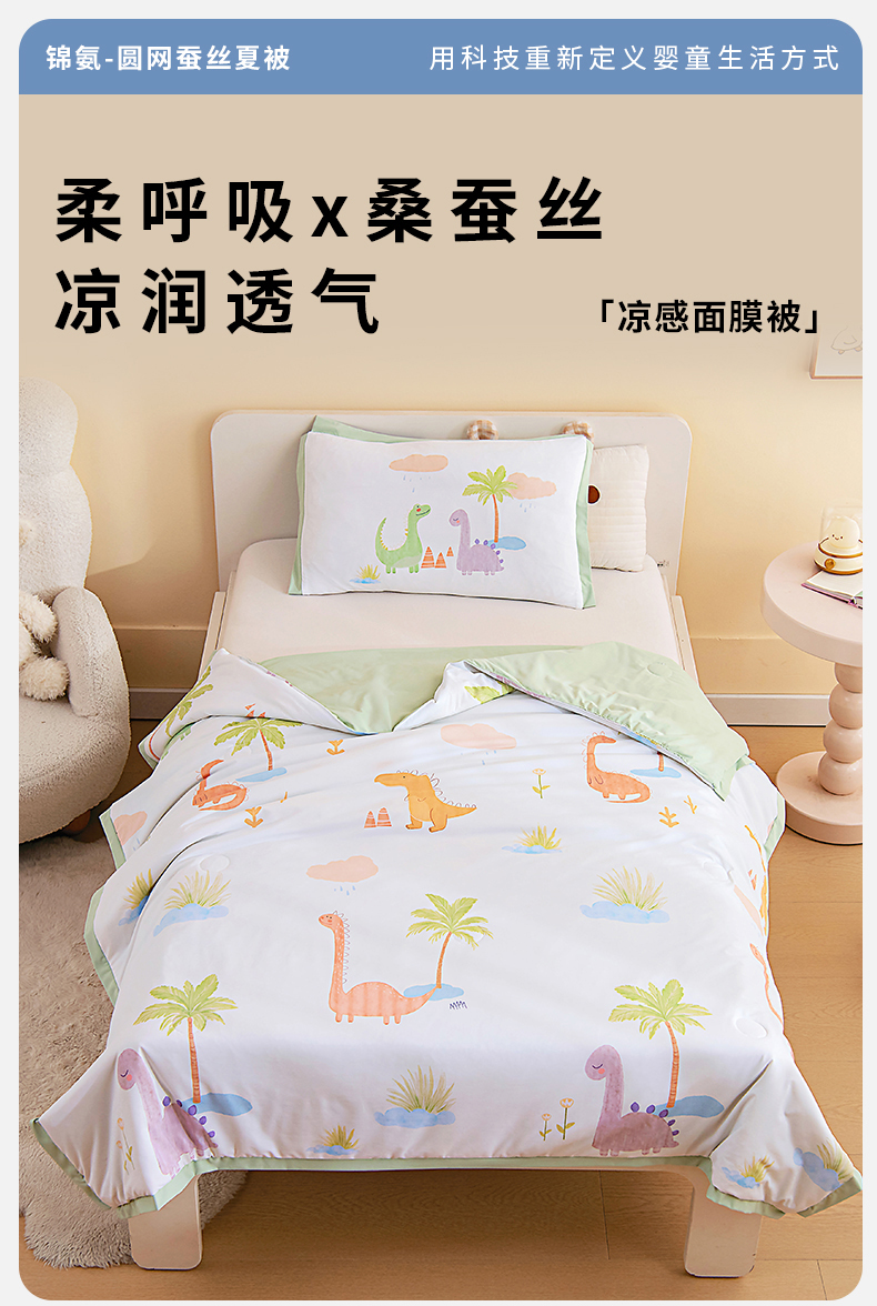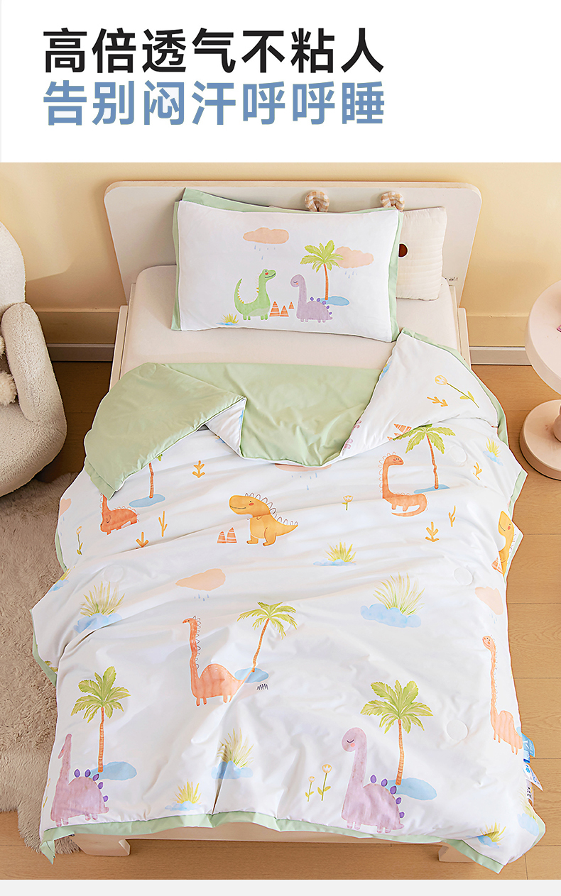 商品名称:御棉坊2026新款A类锦氨数码印花圆网蚕丝儿童夏凉被幼儿园午睡被宝宝夏季空调被薄被子 锦氨-海岸村绿