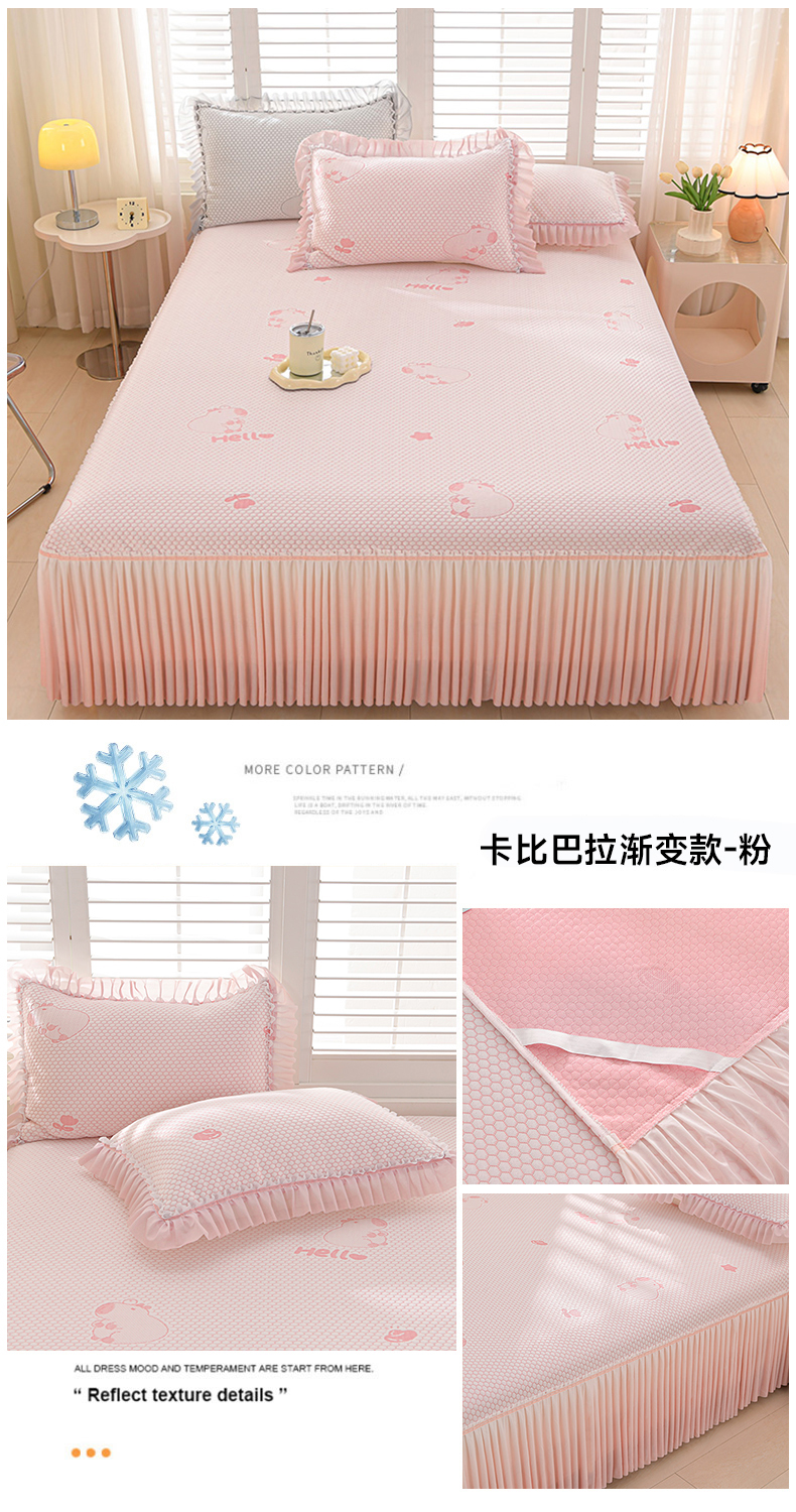 • 91家纺网 家纺一手货源 找家纺 席匠 2026新款冰豆豆床裙卡通款凉席席子凉席三件套 卡比巴拉渐变款-蓝