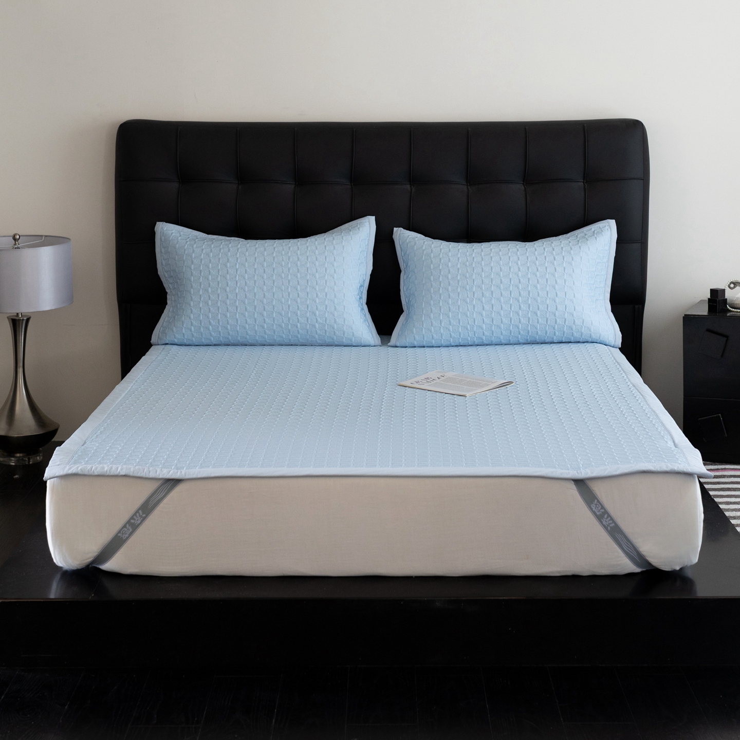 商品名称:云上 2026新款冷萃丝三明治凉感席凉席席子-泡芙格系列 泡芙格床笠-蓝色