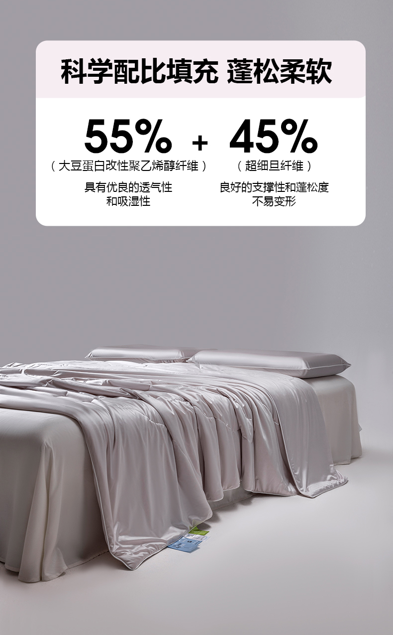 被子 > 夏被 > 迪梵家纺 2026春夏新品A类水光丝绸锦氨(170克面料)凉感冰丝夏凉被55大豆夏被空调被薄被子被芯 暮山紫