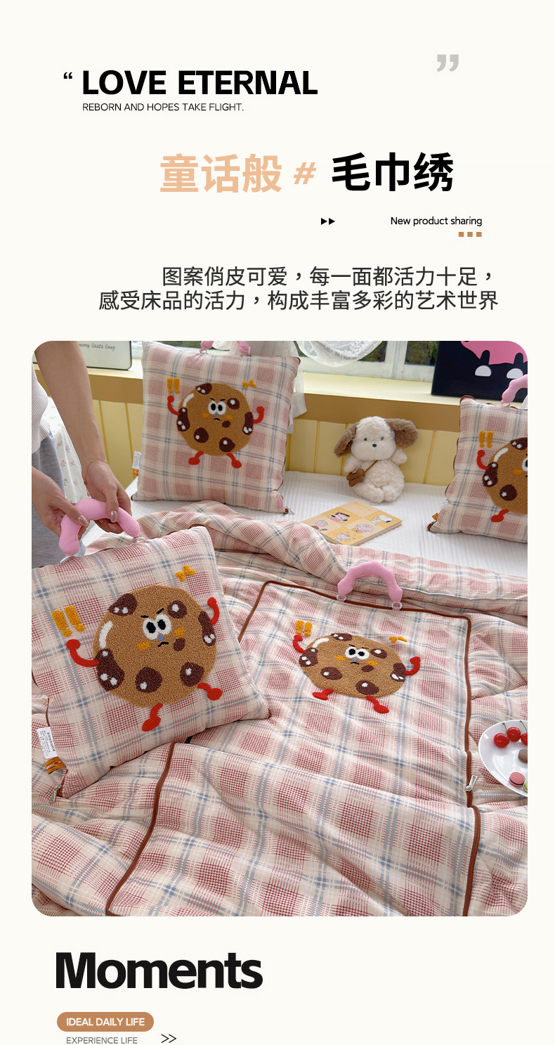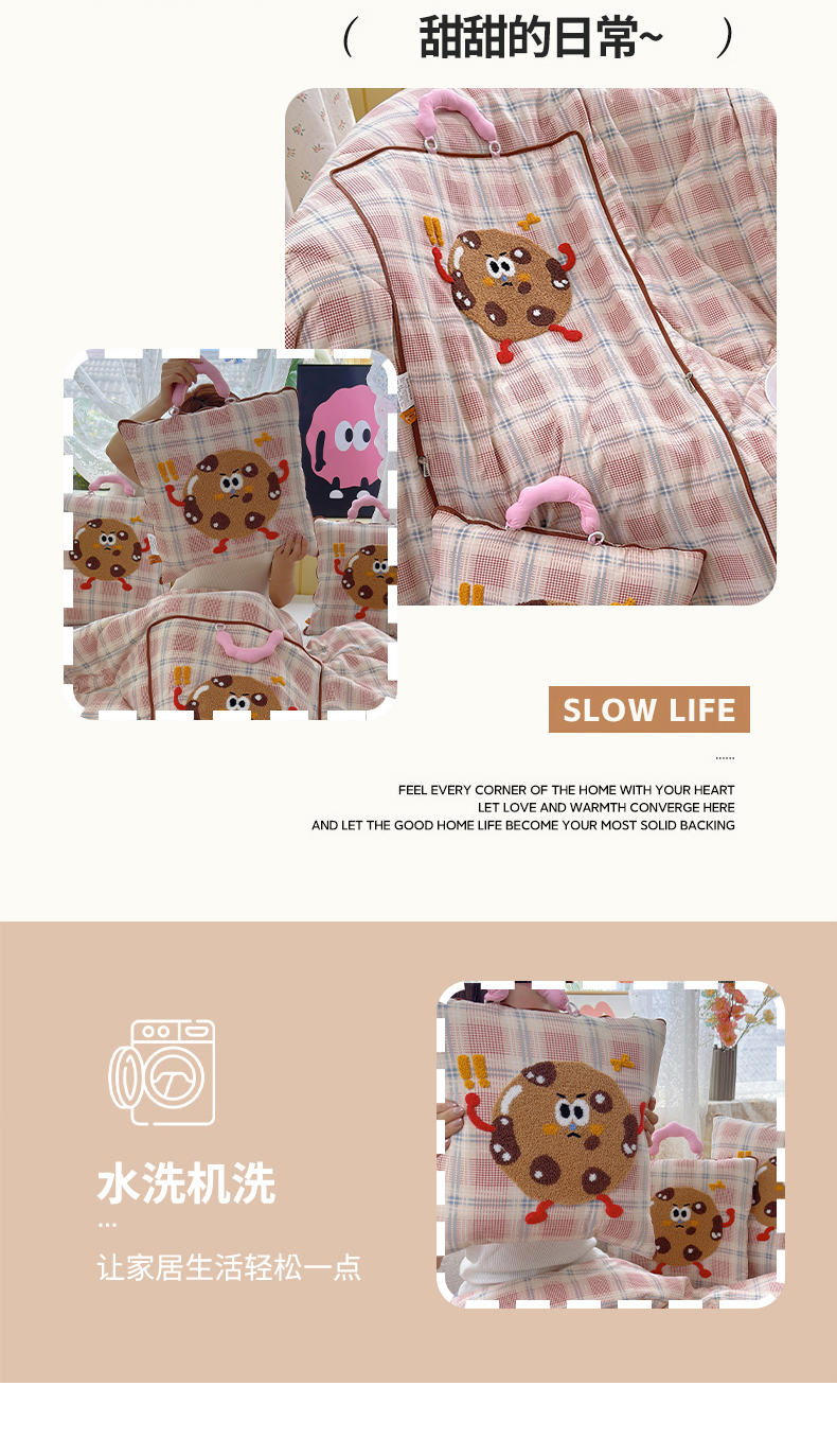 (总)宝马家纺(原梦童画) 2026新款手提式色织毛巾绣愤怒的小饼干抱枕被,愤怒的小饼干 灰,愤怒的小饼干 粉,愤怒的小饼干 咖