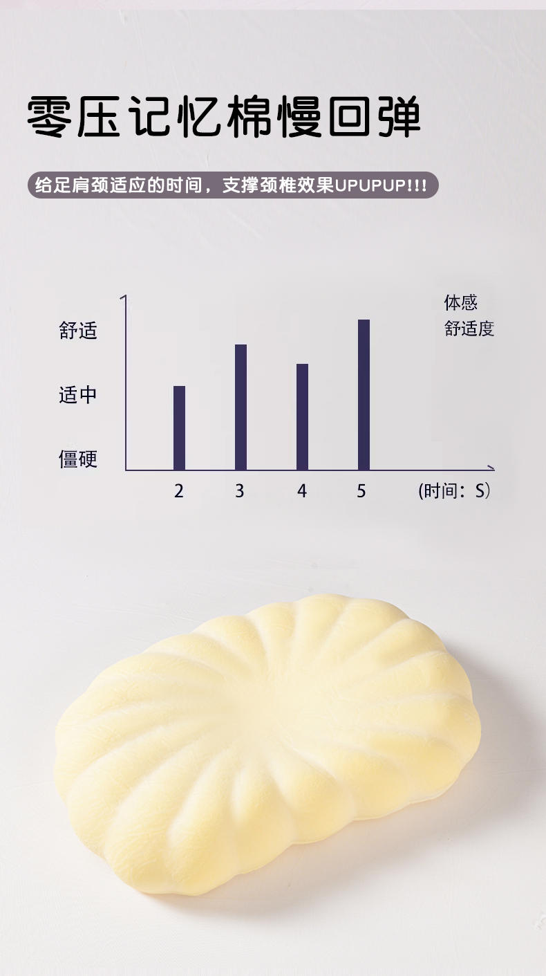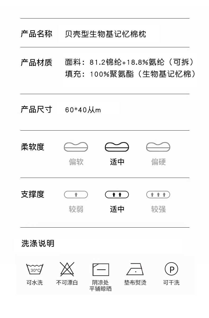 (总)圣靓家纺 2026春夏新款贝壳零压力生物基枕慢回弹护颈椎枕头记忆棉枕芯,灰色,白色,蓝色