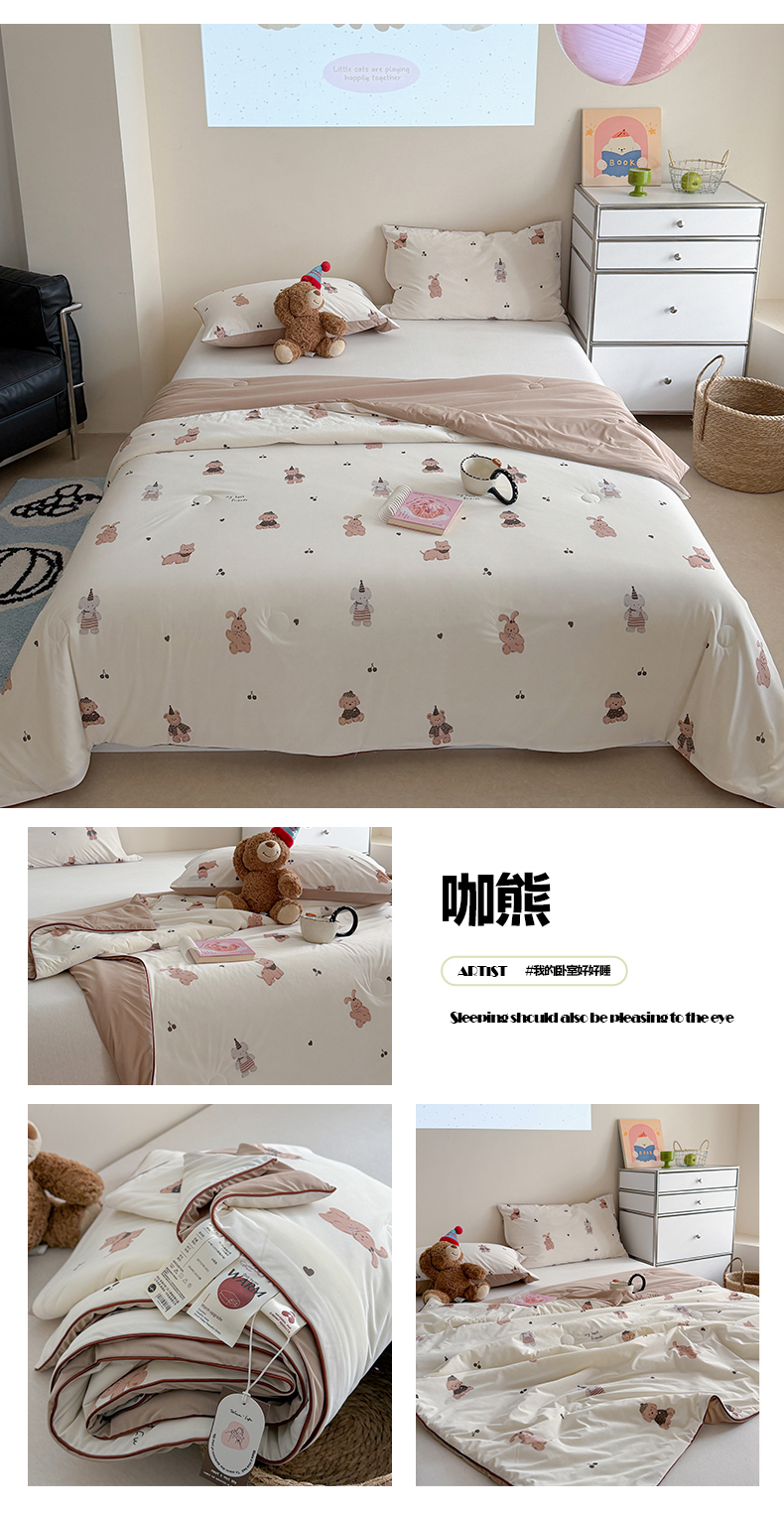 (总)暖生活 2026新款A类冰皮氨纶凉感夏被 被子被芯,组合图仅展示,咖熊,暮粉樱花,奶白小兔,奶蓝小狗,企鹅小鱼,浅蓝花边,清雅蓝,晚香玉,午夜巴黎,星眠小猫,樱桃小马