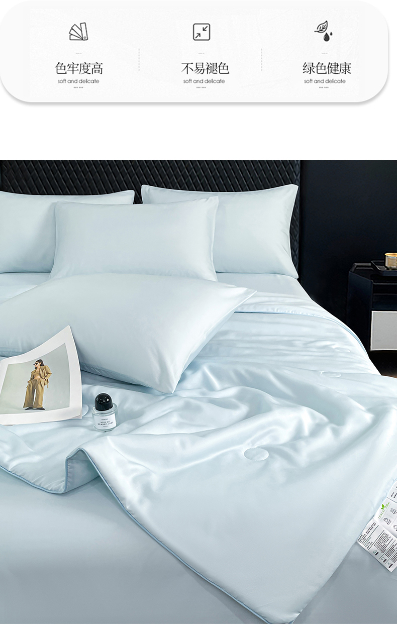 • 91家纺网 家纺一手货源 找家纺 (总)尊妙被业 2026春夏新款莱赛尔天丝夏被蚕蛹蛋白夏被夏凉被空调被四件套-纯色款,艾绿,花银灰,静谧蓝,垦丁蓝