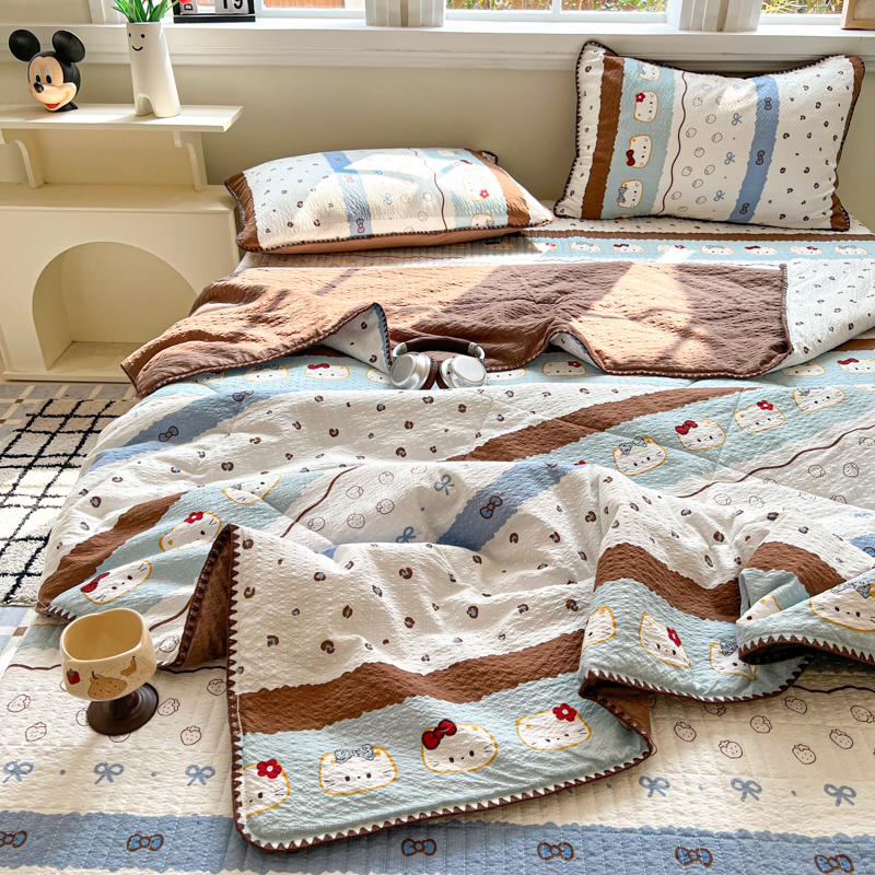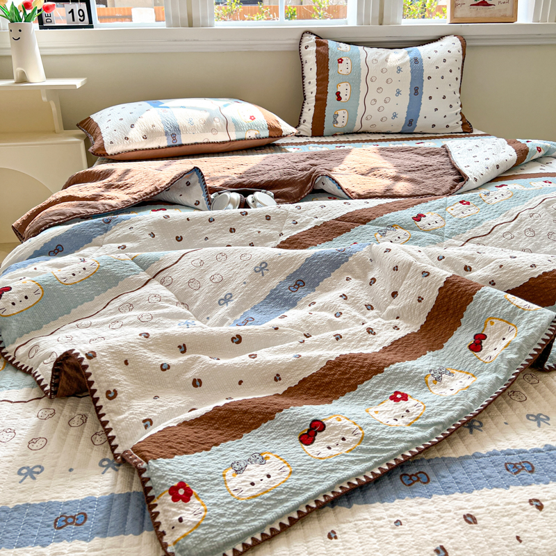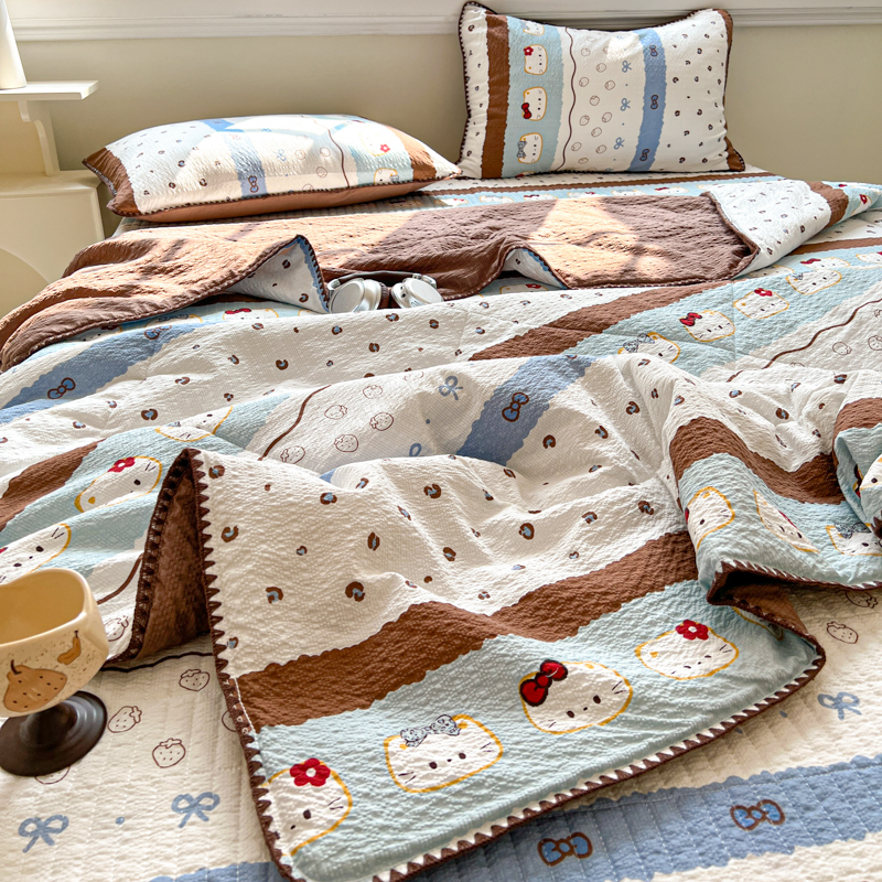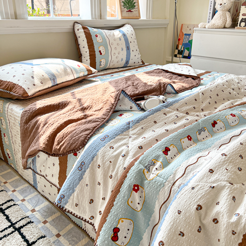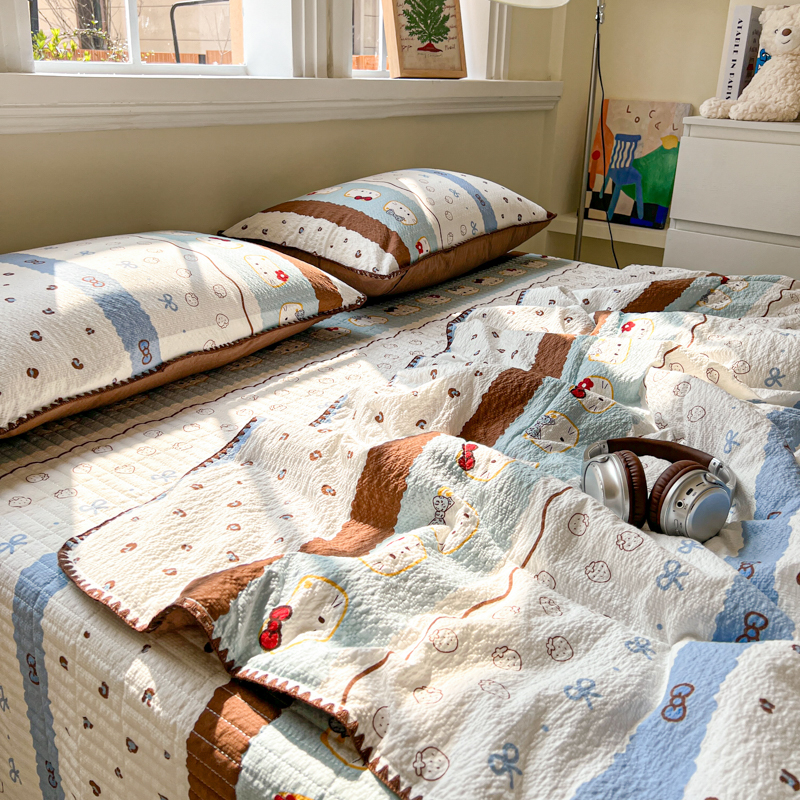 禾沐 2026新款泡芙纱三角针床盖夏被四件套 KT 猫