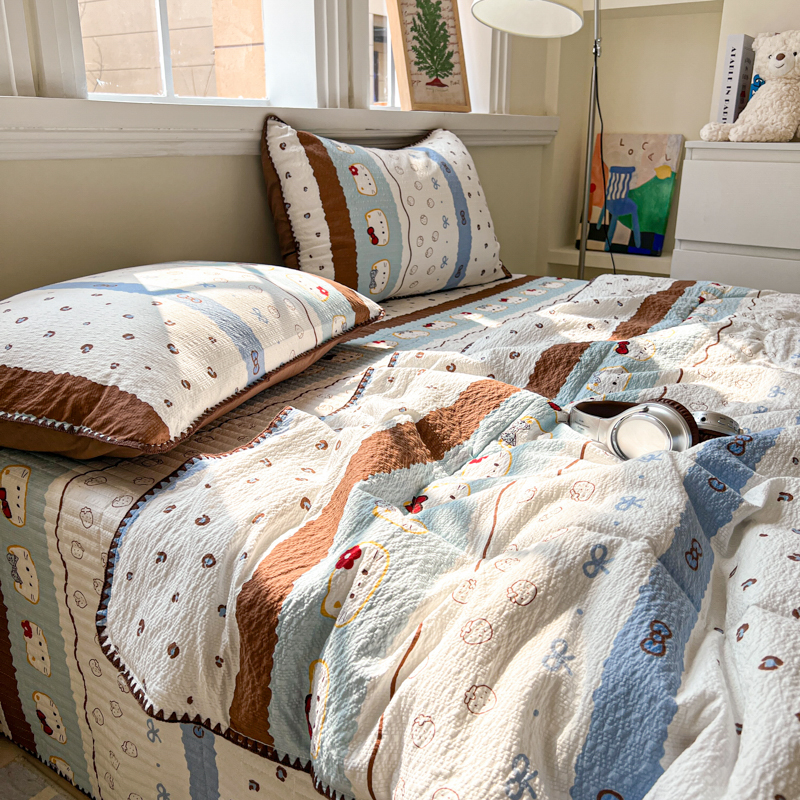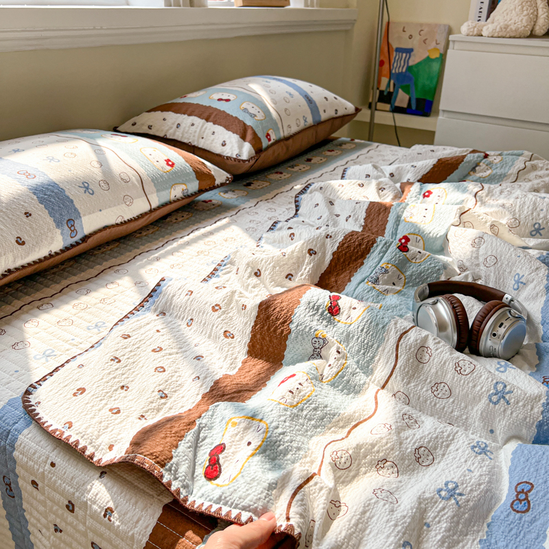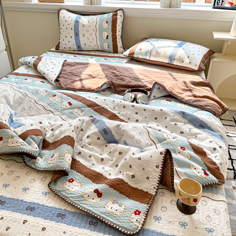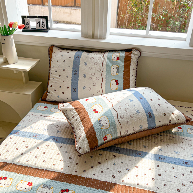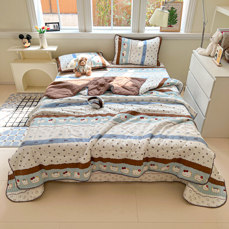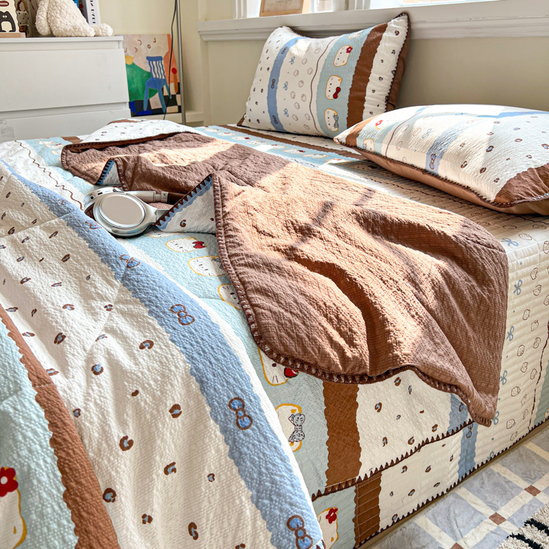 禾沐 2026新款泡芙纱三角针床盖夏被四件套 KT 猫