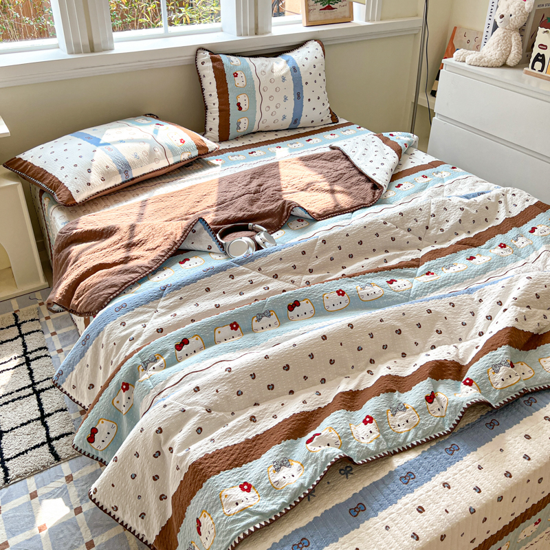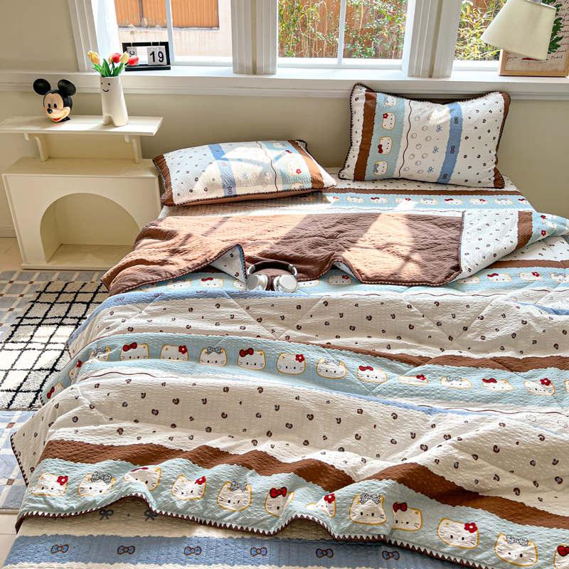 商品名称:禾沐 2026新款泡芙纱三角针床盖夏被四件套 KT 猫