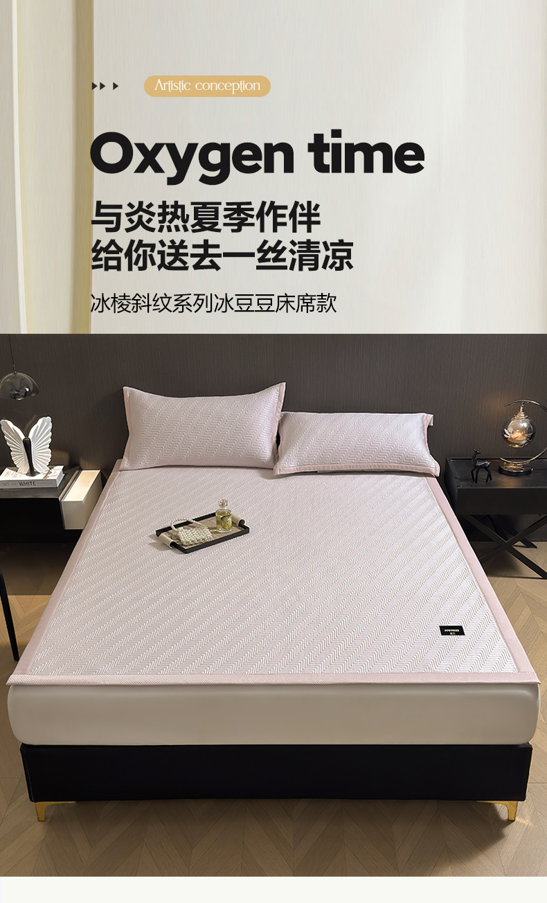 当前位置: 91家纺网 > 商品网购 > 床上用品 > 凉席 > 其他凉席 > 耐思家纺 2026新款A类高克重三明治复合乙纶提花冰豆豆凉席床笠冰棱斜纹系列(提供买家秀) 冰棱斜纹-粉床席款