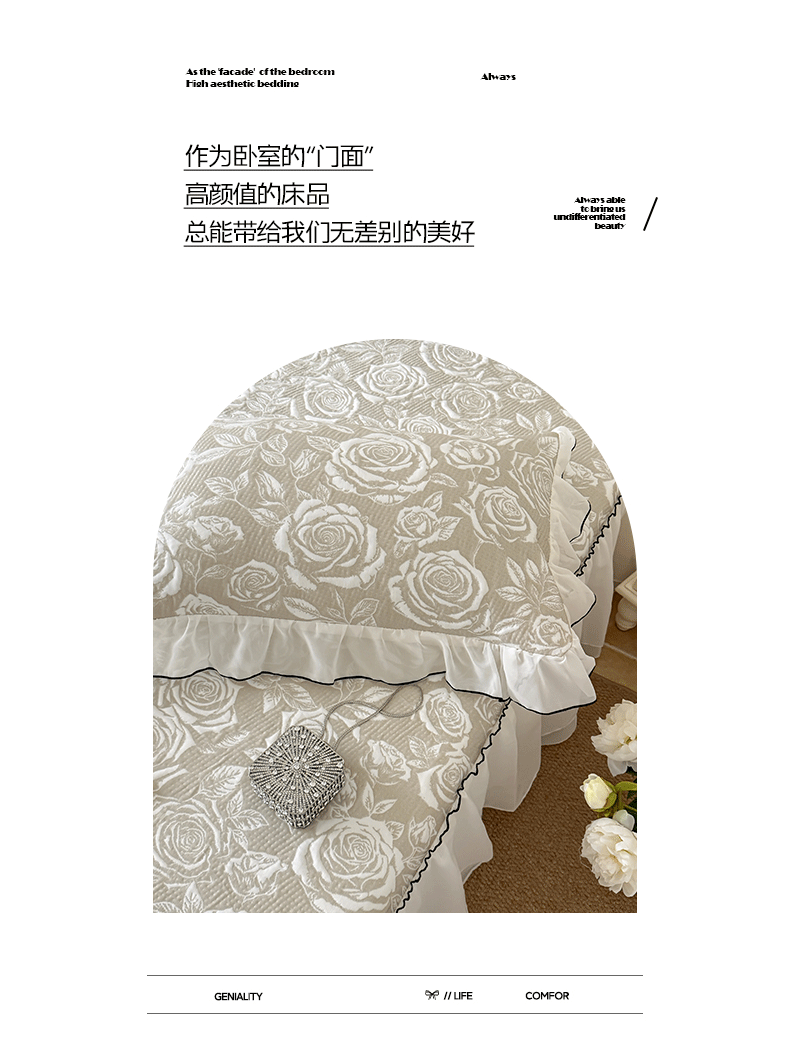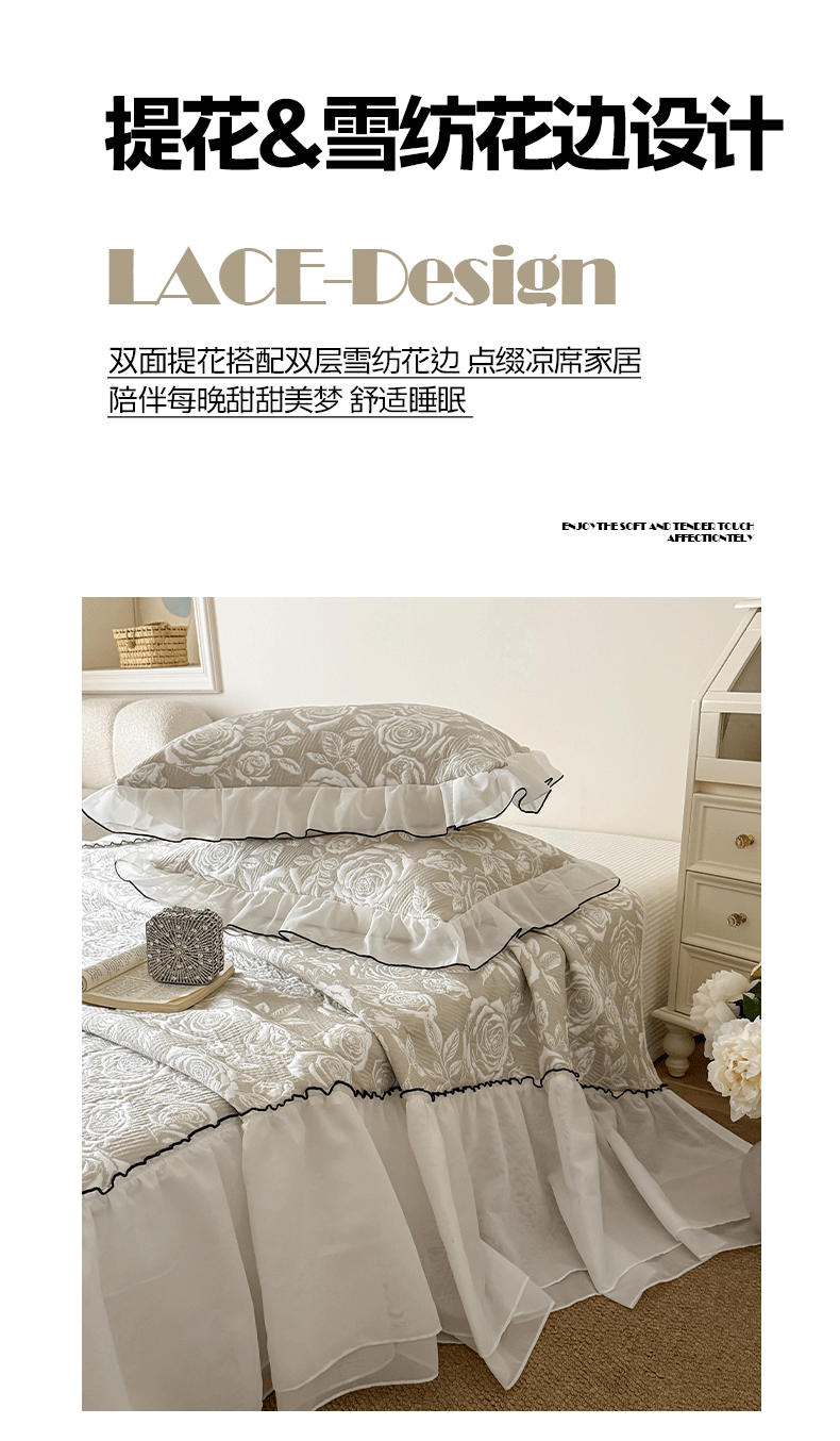 (总)吾欢心 2025新款公主风雪纺边四季通用夹棉床盖,床盖白,床盖粉,床盖黄,床盖咖,床盖绿,床盖抹茶绿,床盖紫