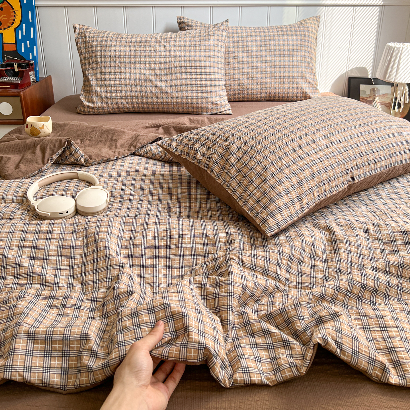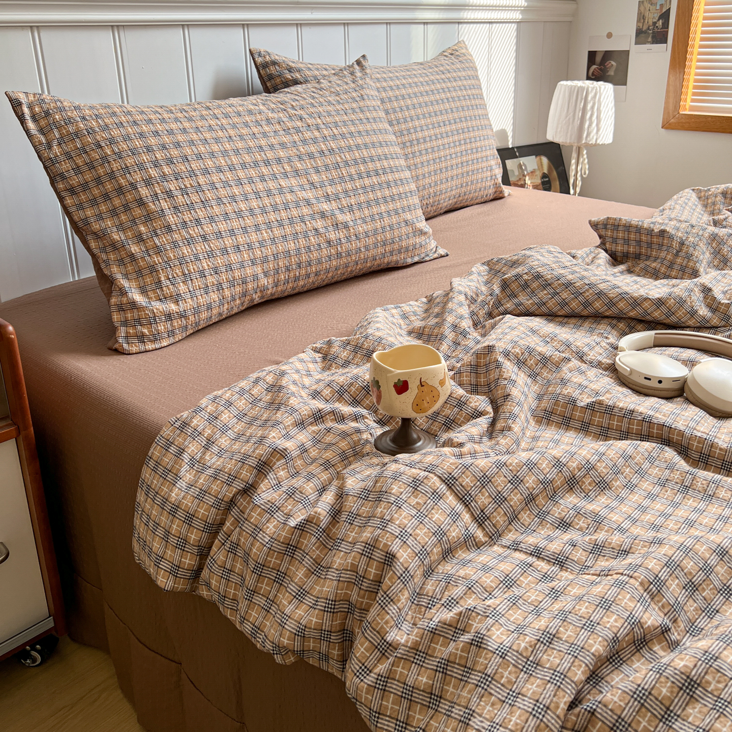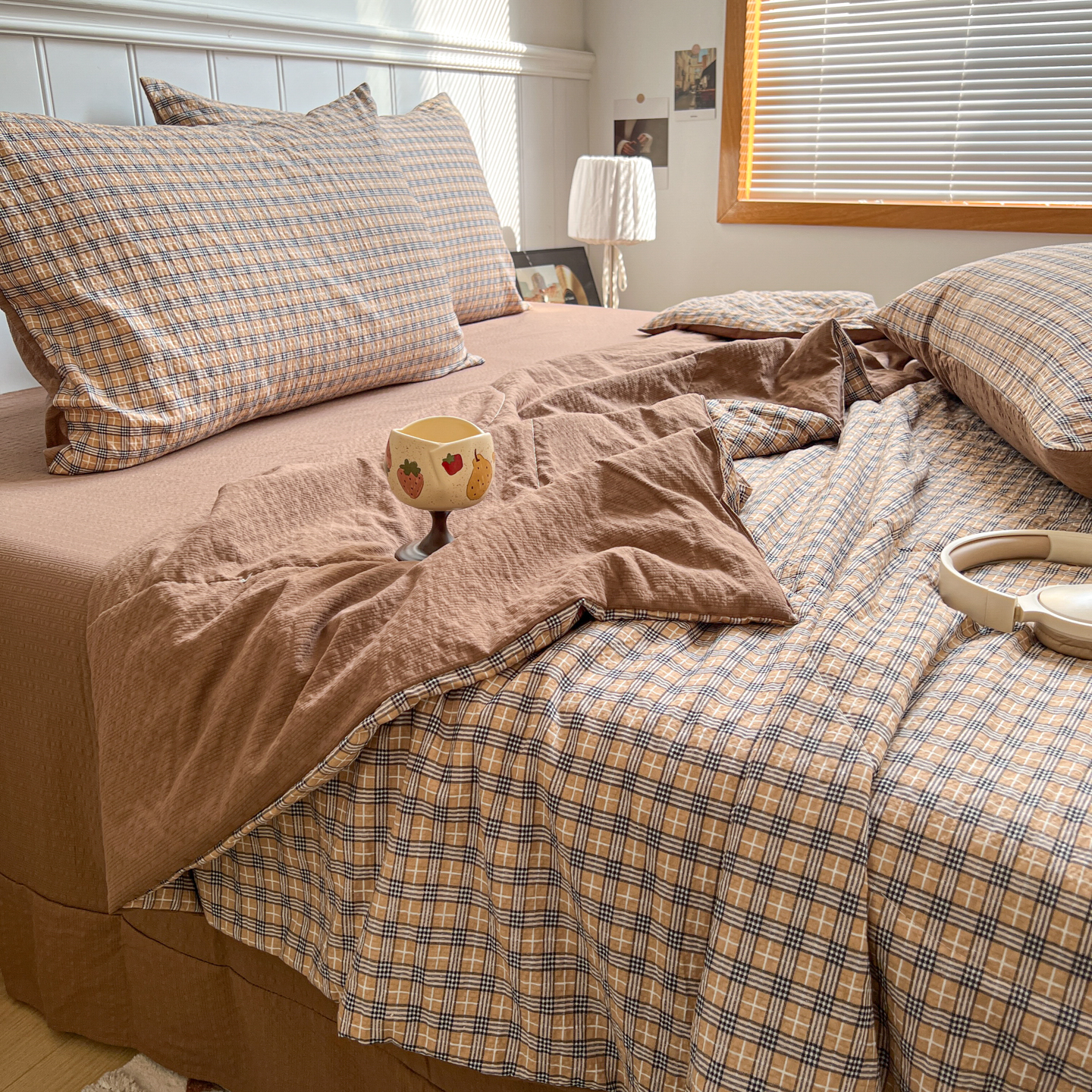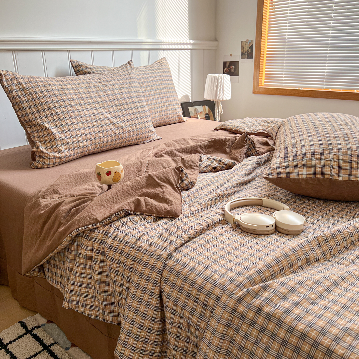 禾沐 2026新款泡芙纱夏被四件套简单款 古典格