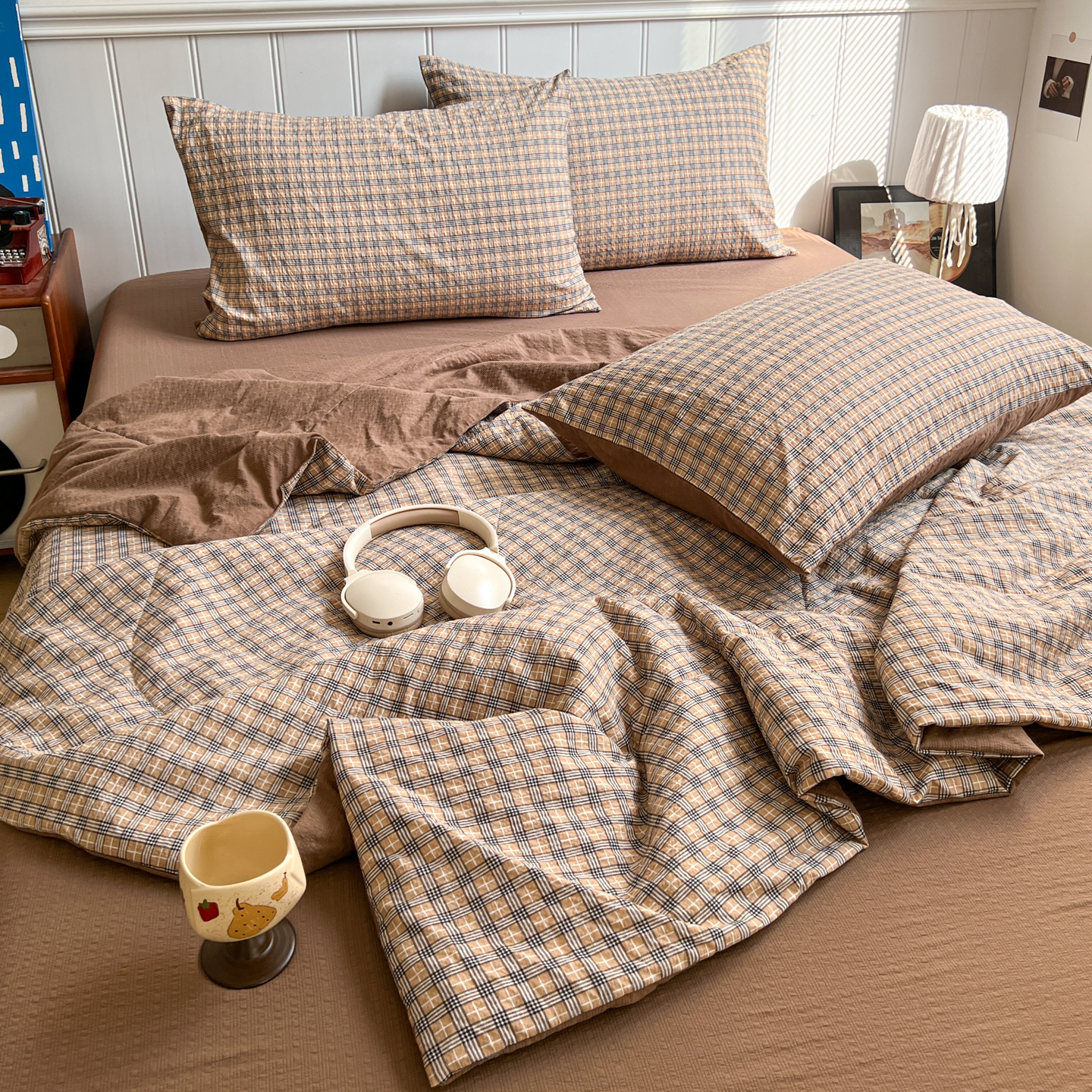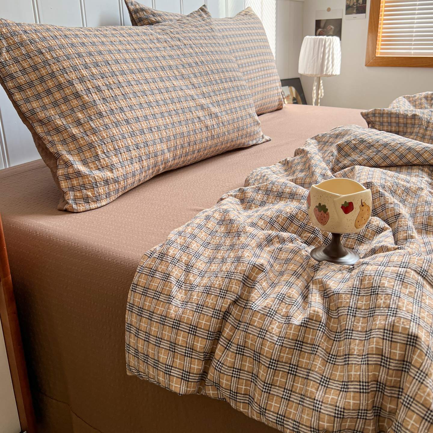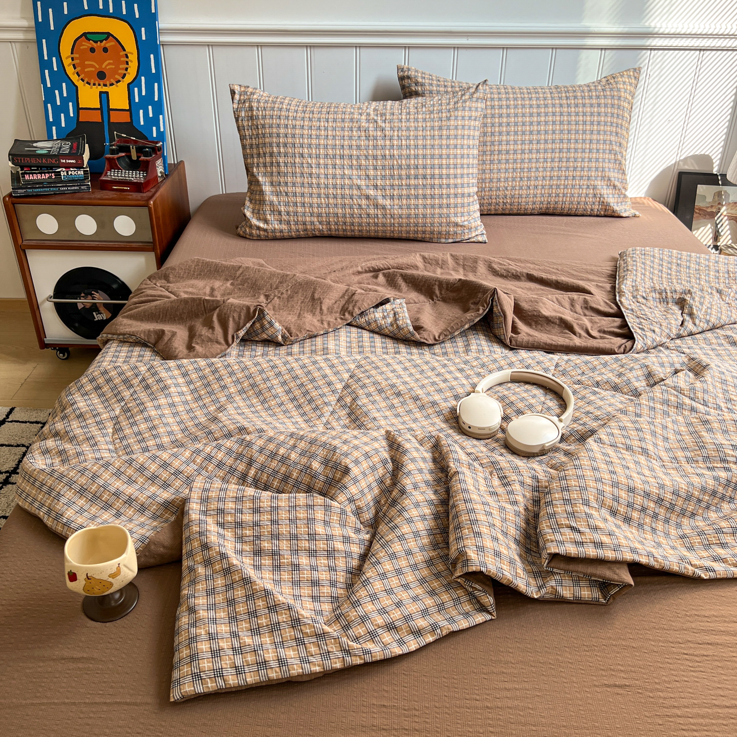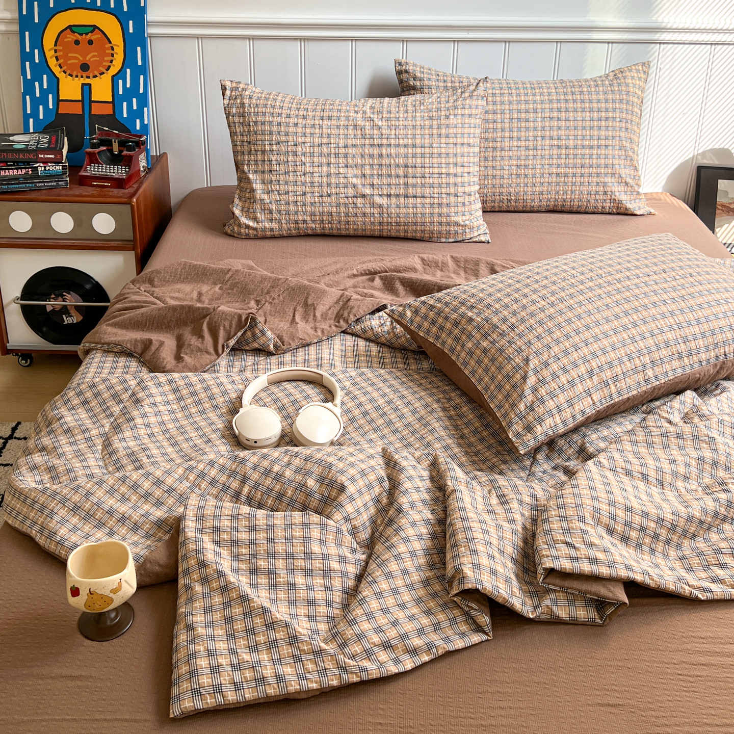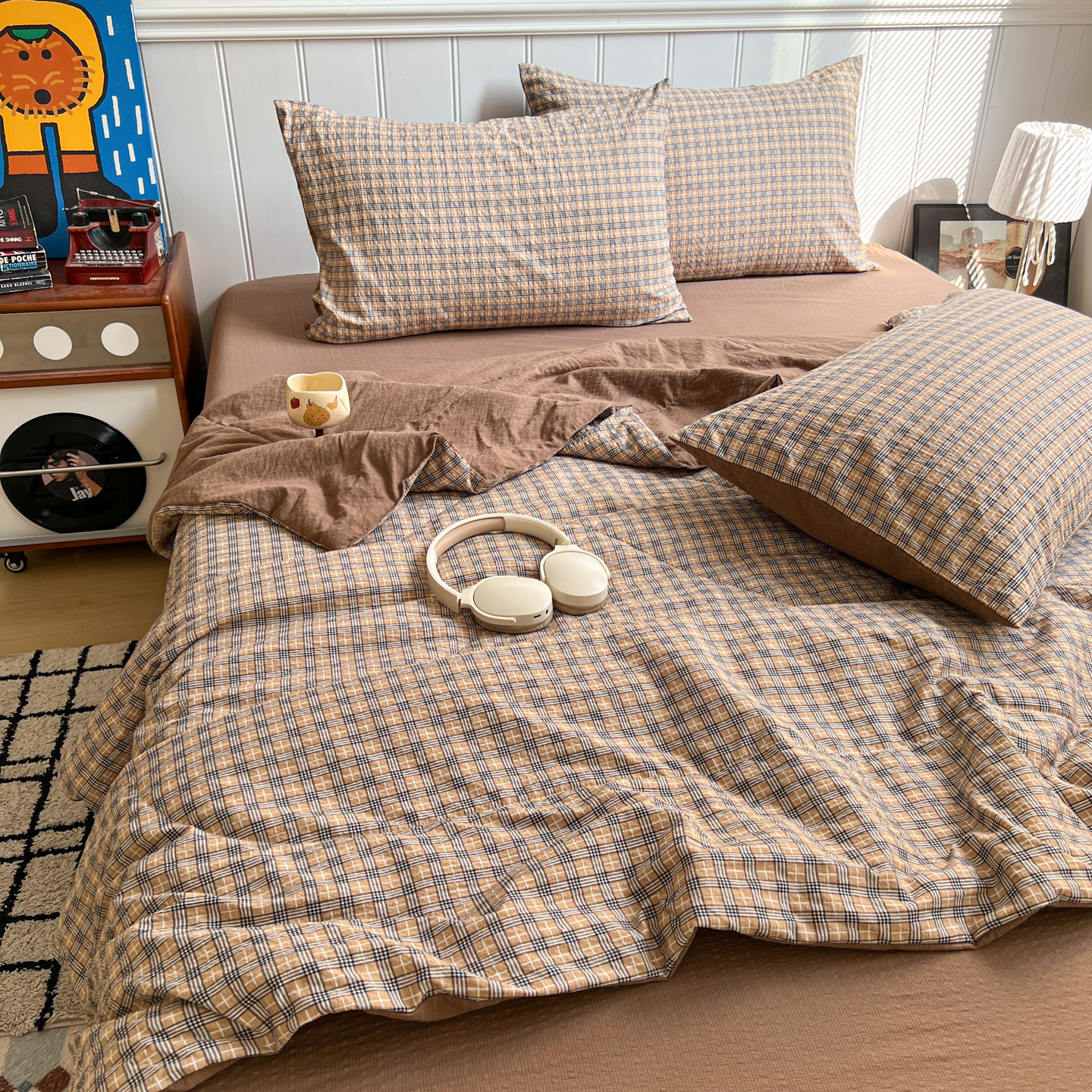 禾沐 2026新款泡芙纱夏被四件套简单款 古典格