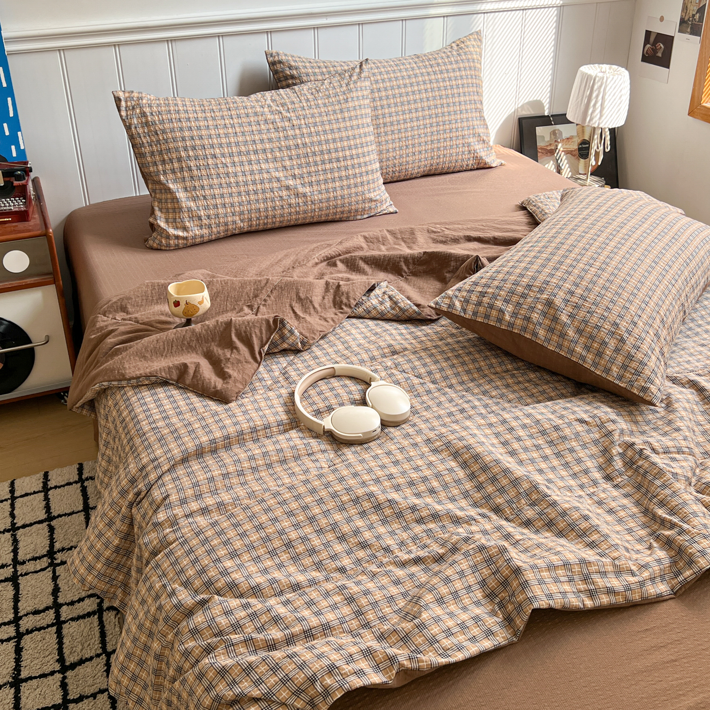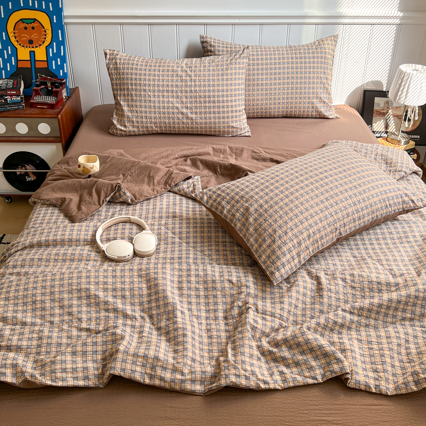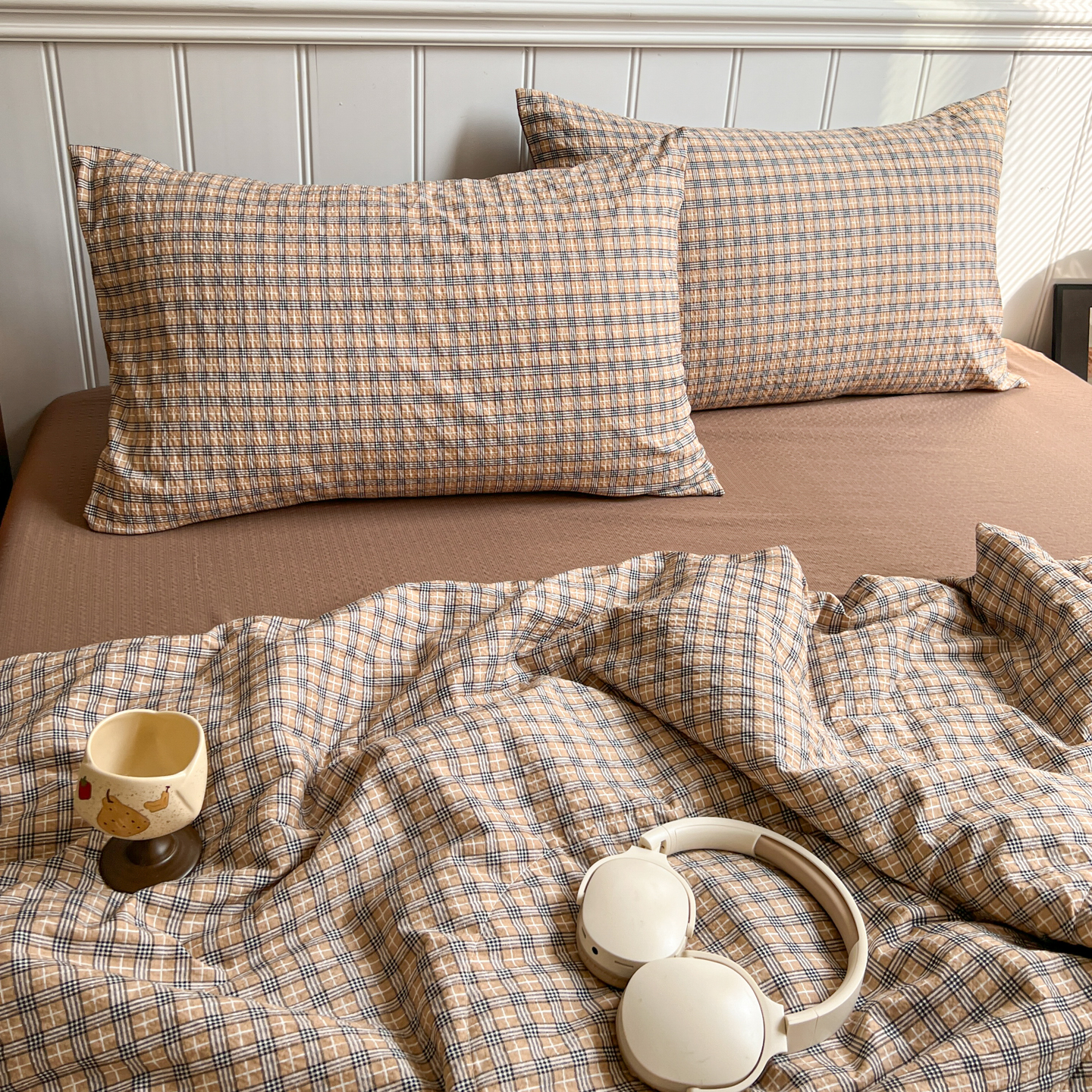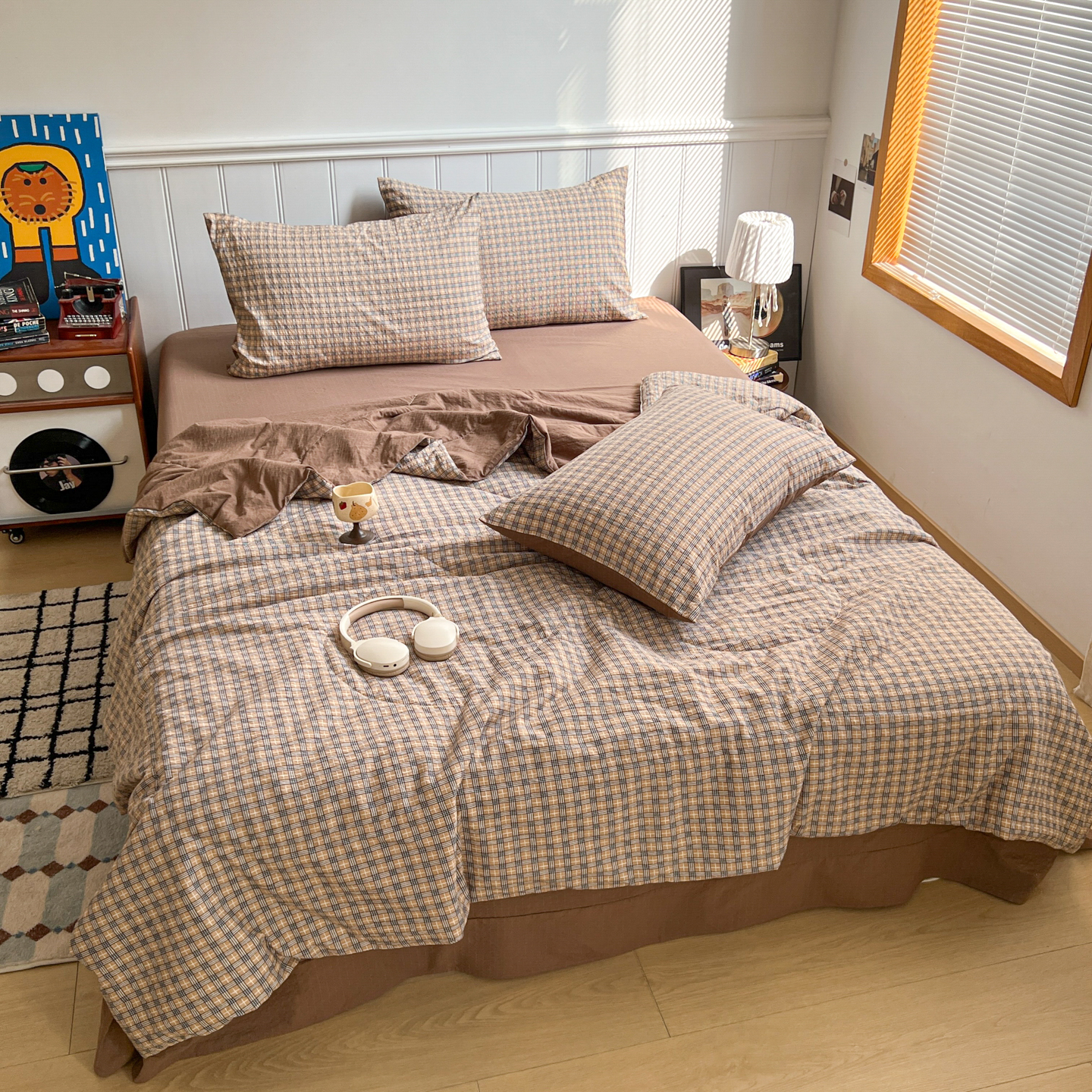 禾沐 2026新款泡芙纱夏被四件套简单款 古典格