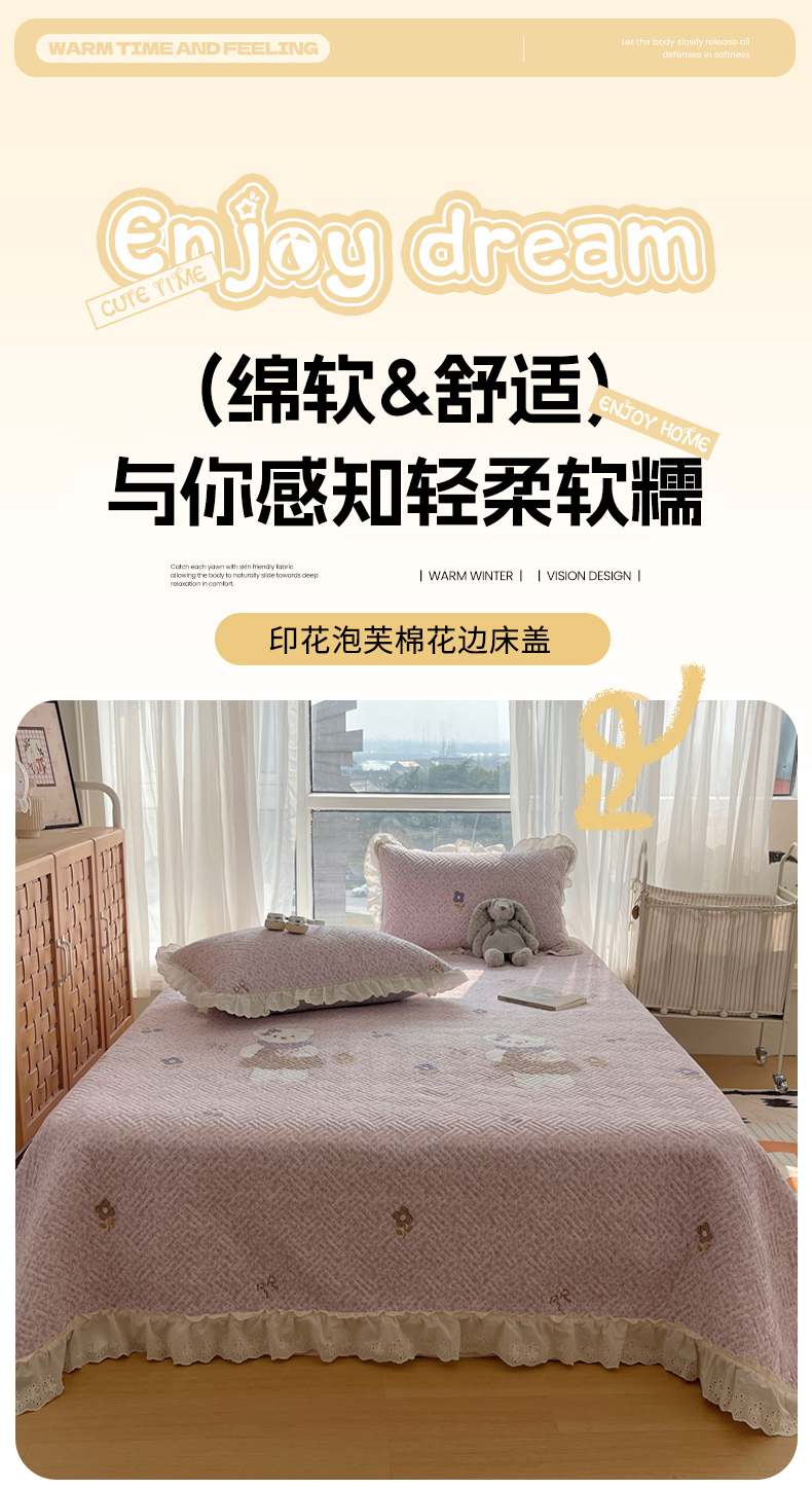 • 91家纺网 家纺一手货源 找家纺 (总)爱彼家纺 2026新款印花泡芙棉花边床盖三件套-泡芙床盖,花边-含花诗放,花边-爱心家园,花边-花样年华,花边-可爱熊,花边-圣诞花语,花边-温馨时光,花边-心心相连