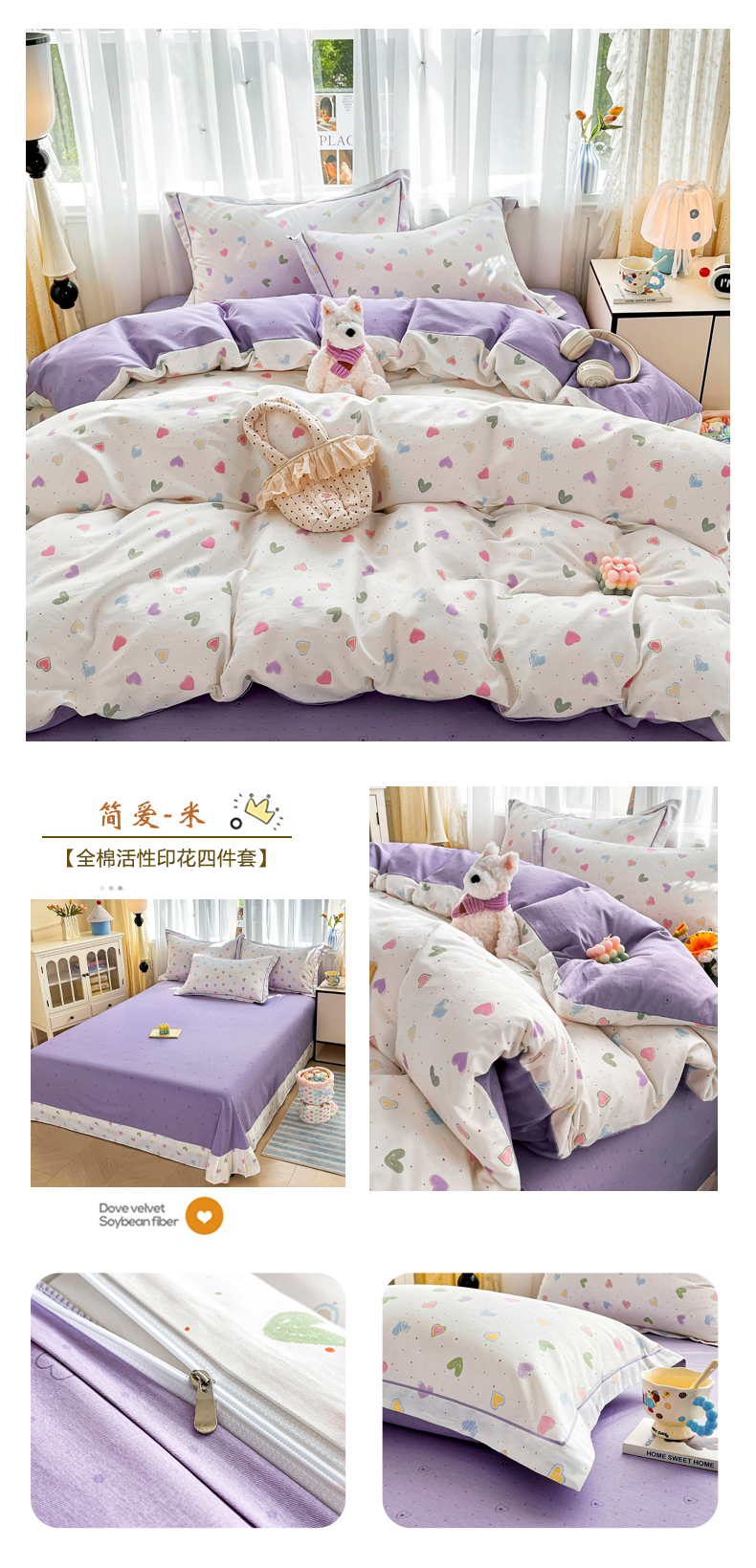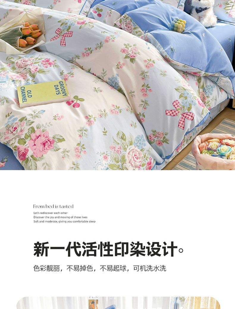 商品名称:(总)美织缘家纺 2026直播爆款一字绣吊边床单款纯棉全棉四件套印花百分百(喷气高品质)