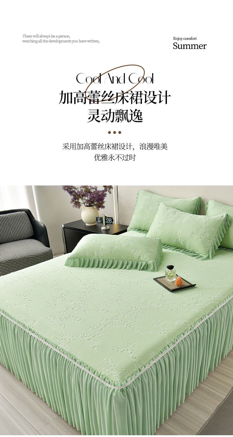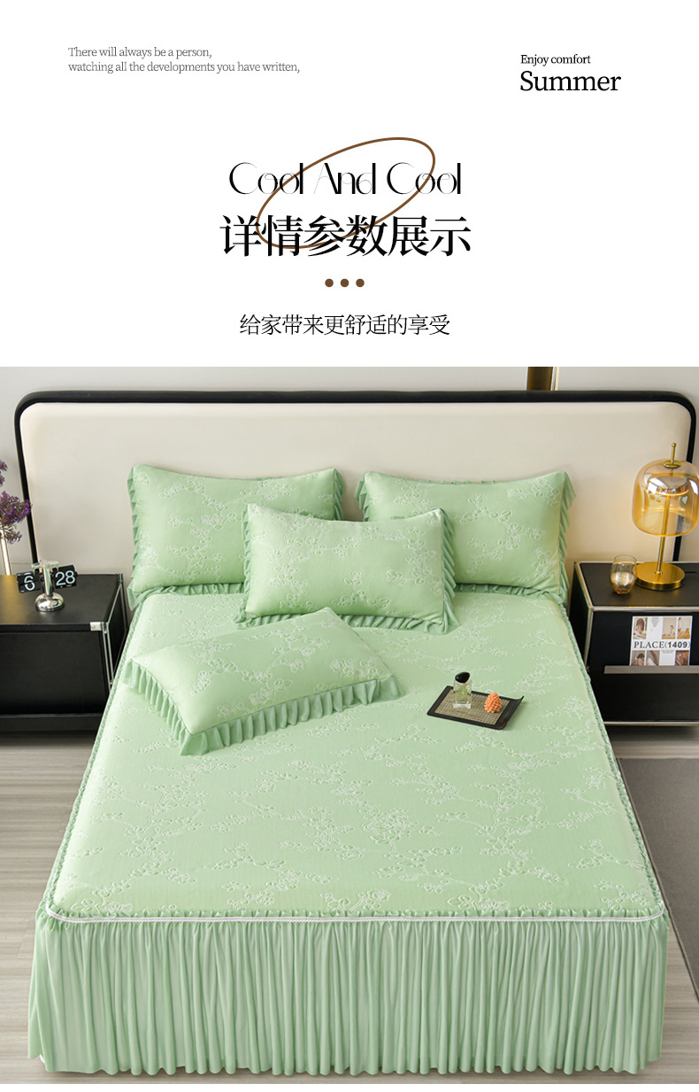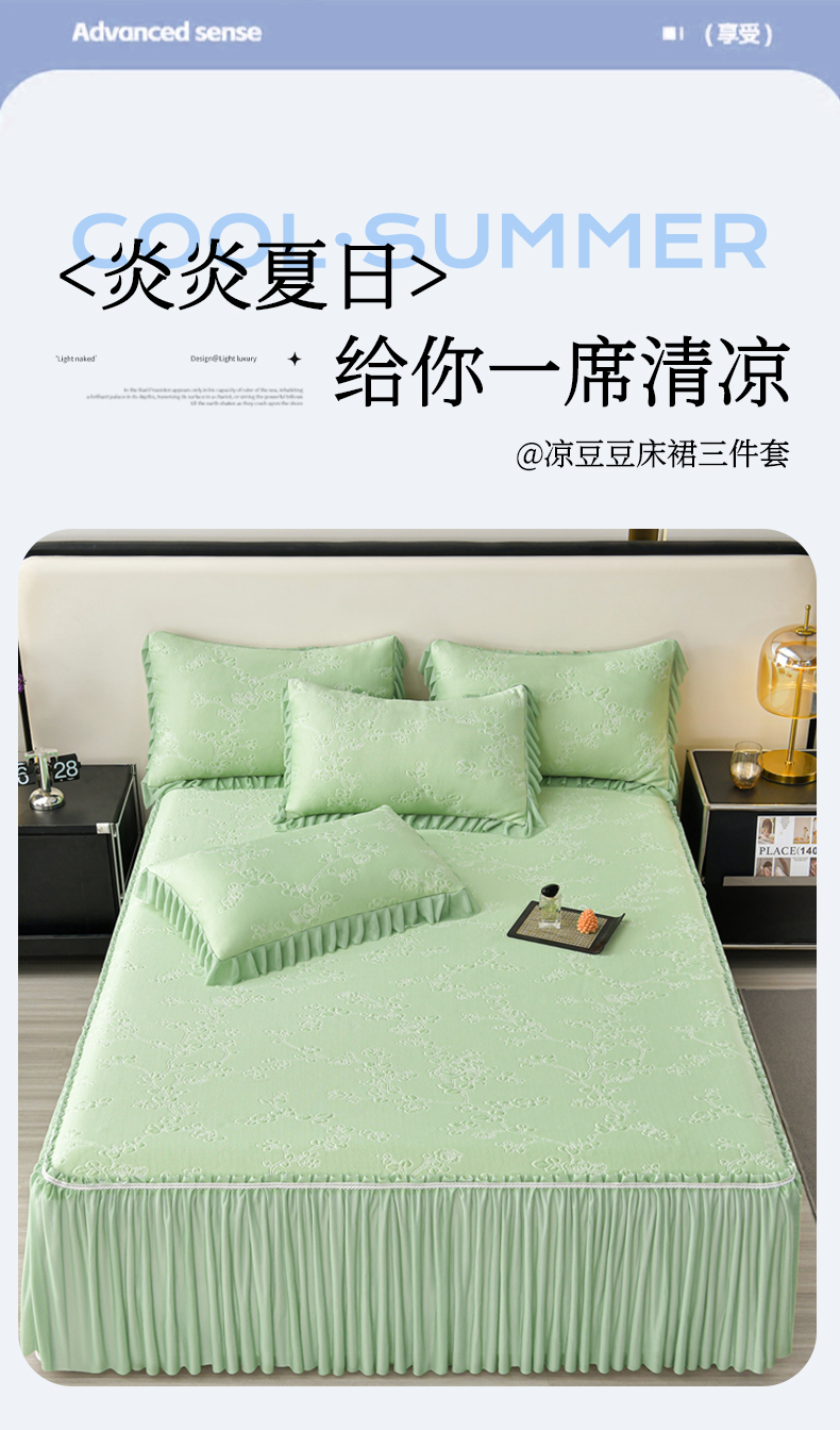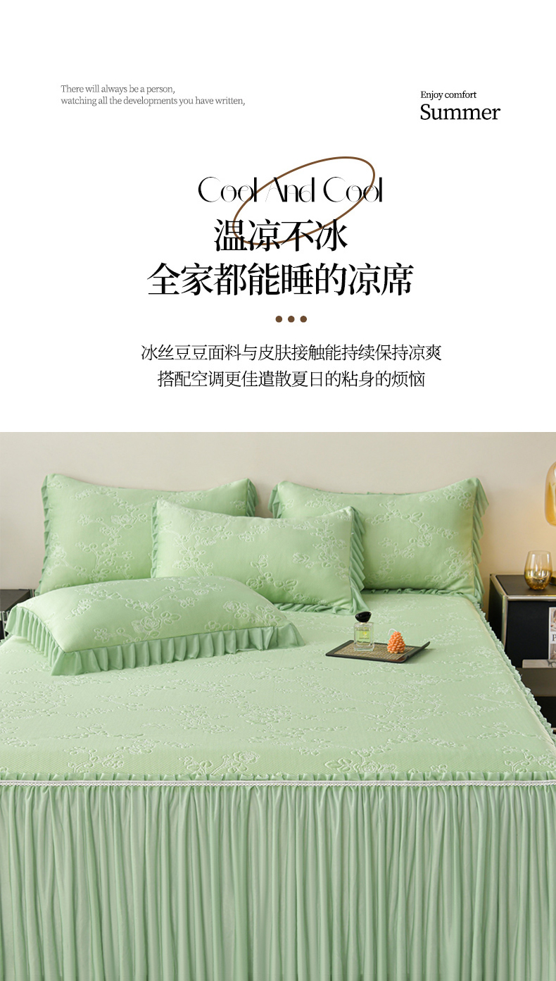 星窝家纺 2026新款冰豆豆床裙款凉席 青岚梅影