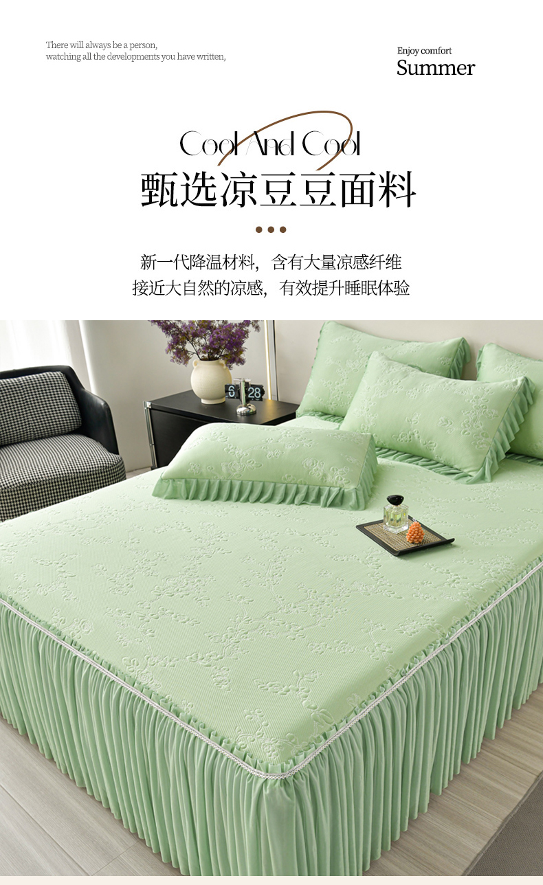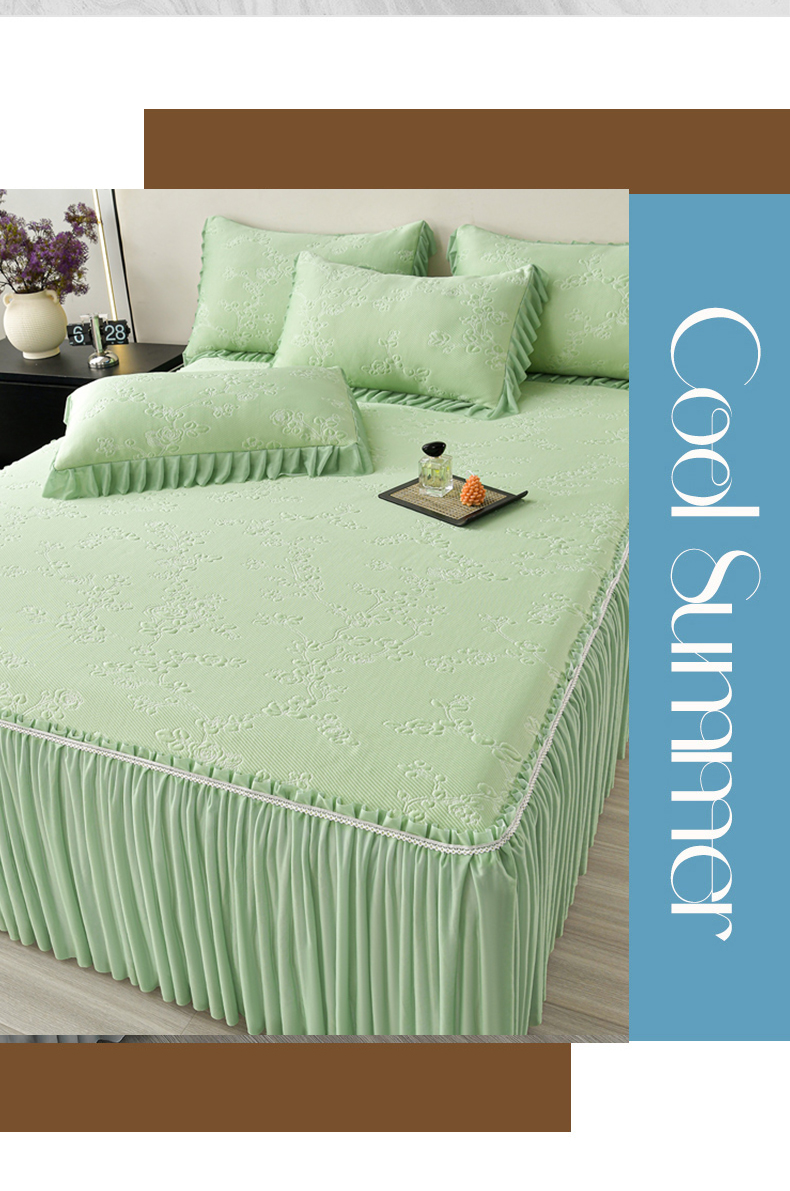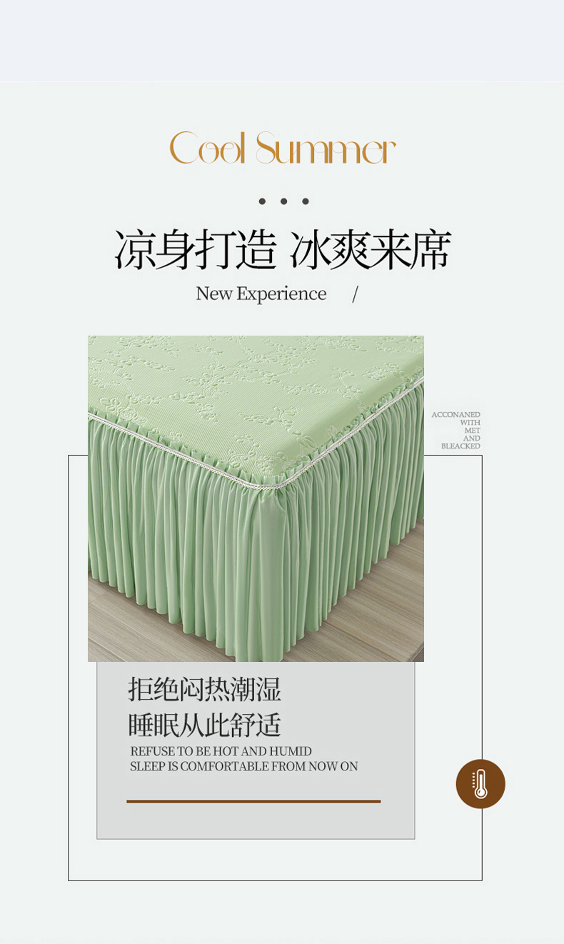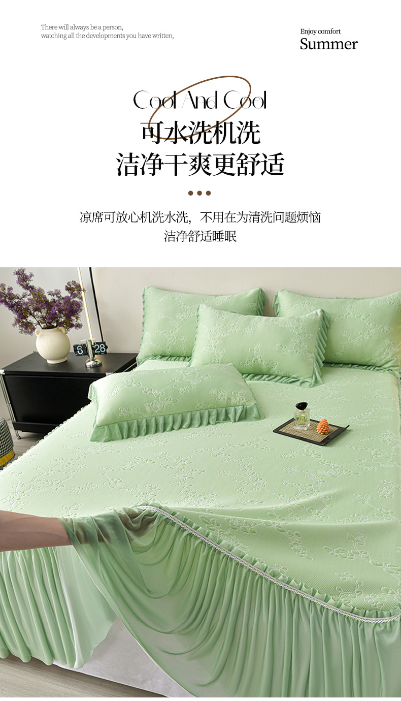 星窝家纺 2026新款冰豆豆床裙款凉席 青岚梅影