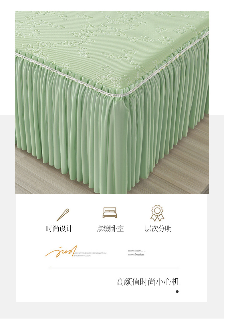 (总)星窝家纺 2025新款水洗棉花边床裙式多功能床盖三件套,经典豆绿,经典粉色,经典灰色,经典橘色,经典蓝色,经典奶白,经典紫色