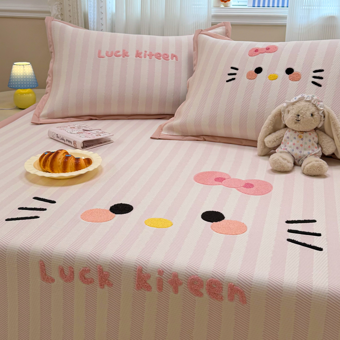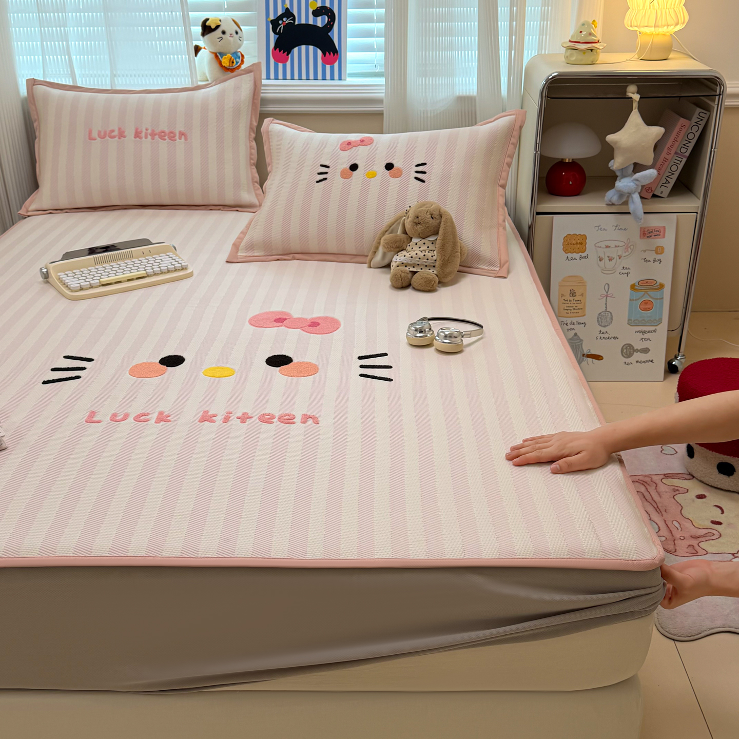(总)懒猫家纺 2026新款卡通提花凉豆豆床笠款凉席,爱心小熊-床笠款,粉绒兔子-床笠款,活力狗仔-床笠款,萌趣鸭丫-床笠款,少女甜梦-床笠款,兔兔乐园-床笠款,星糖蓝猫-床笠款