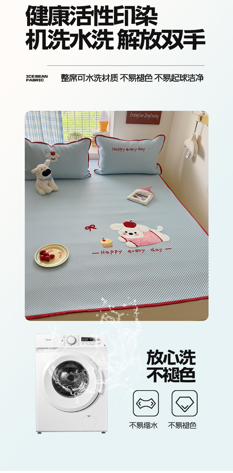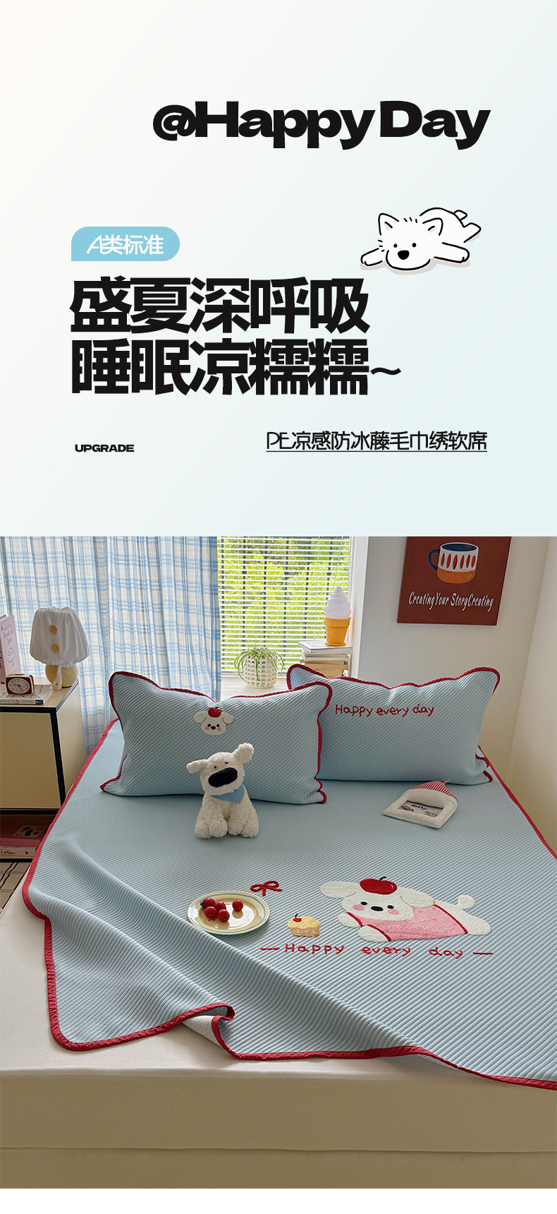 (总)顾里家纺 2026新款Pe凉感仿冰藤软席凉席三件套,滑板腊肠狗,苹果木马,苹果趴熊,甜圈小猫,香蕉熊,组合图仅供展示