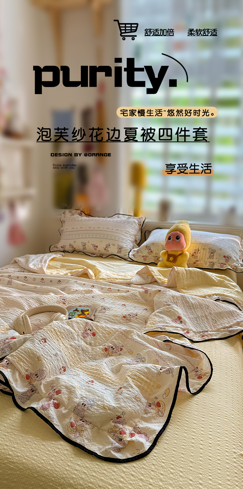 商品名称:水墨江南 2026新款泡芙纱花边夏被四件套 奶酪星仔