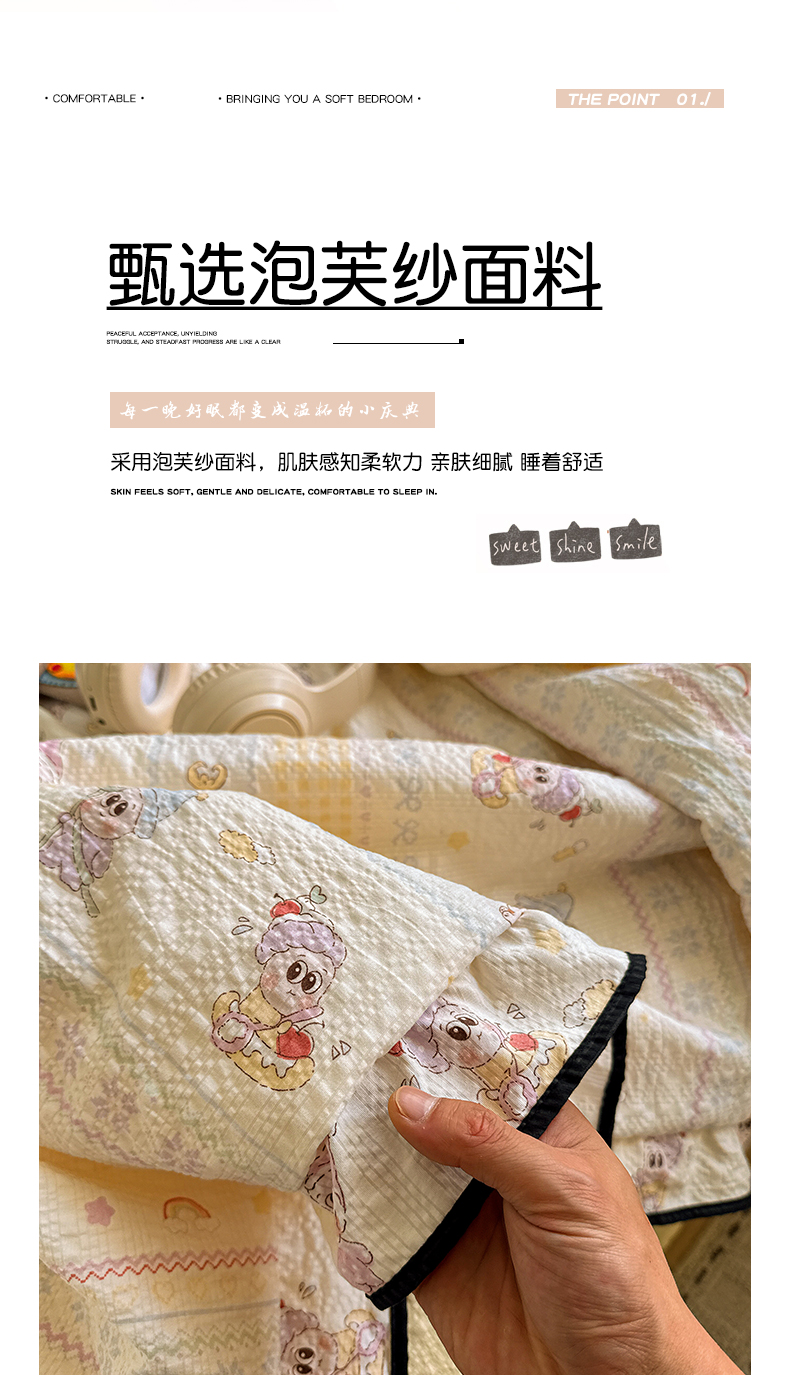 (总)水墨江南 2026直播热款泡芙棉双层纱四件套,慕秋,猫果乐园,豹纹黑皮,豹纹南瓜,啵啵红,捕梦星仔,春日小兔,呆萌熊,费尔岛小熊,粉黛佳人,格纹小熊,果子象,红色小马,蝴蝶结果果,花季,咖色小猫,可爱小星星,可爱星仔,可爱熊猫,可爱云朵,快乐星星,木马甜心,泡芙小狗,七彩小兔,甜果果,甜心伙伴,条纹狗狗,夏日草莓,小狗日记,小马派对,小熊啵啵,樱桃啵啵,知秋