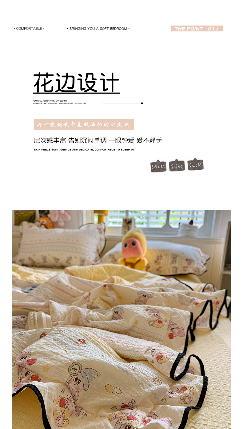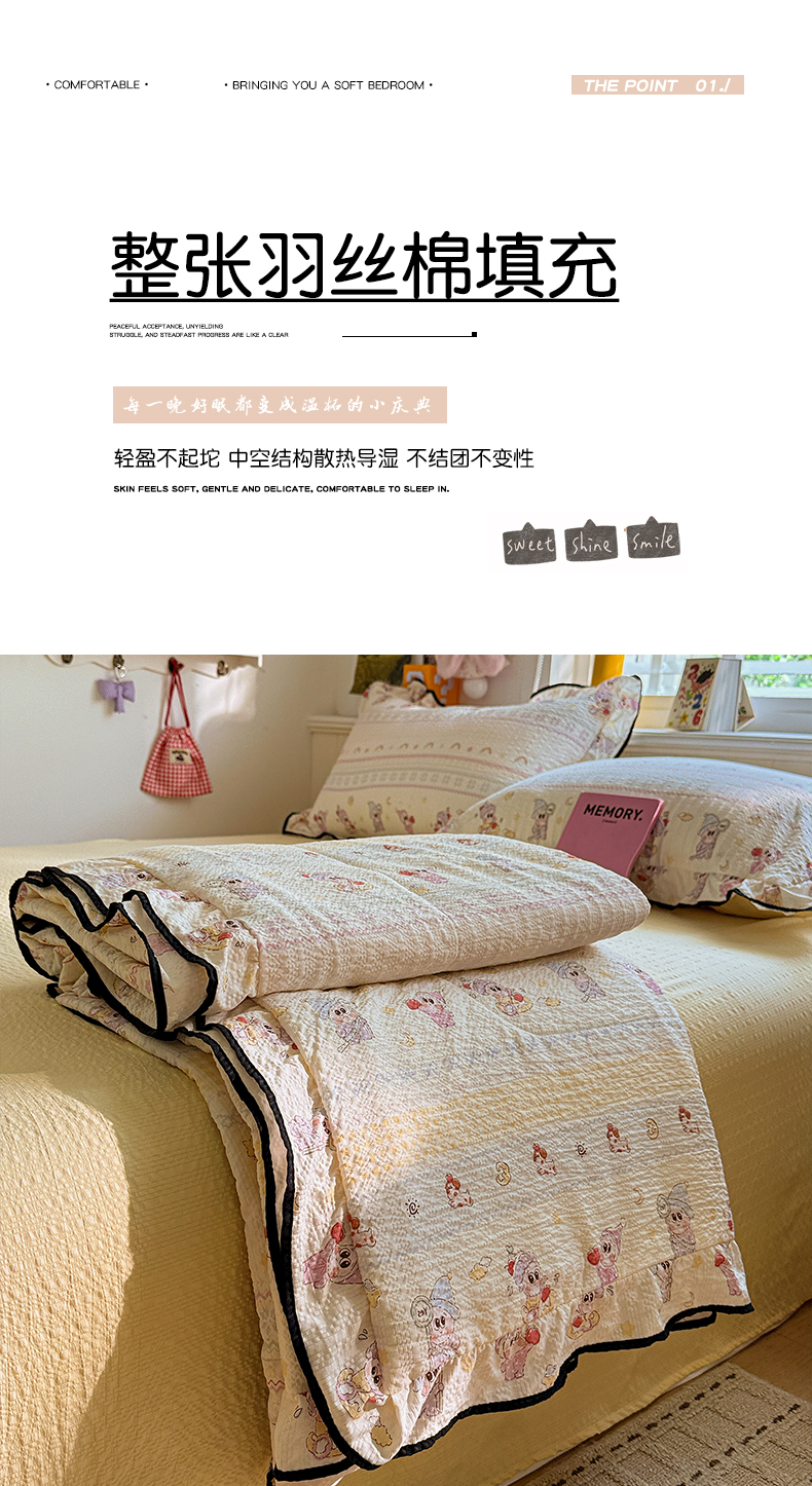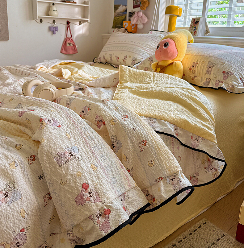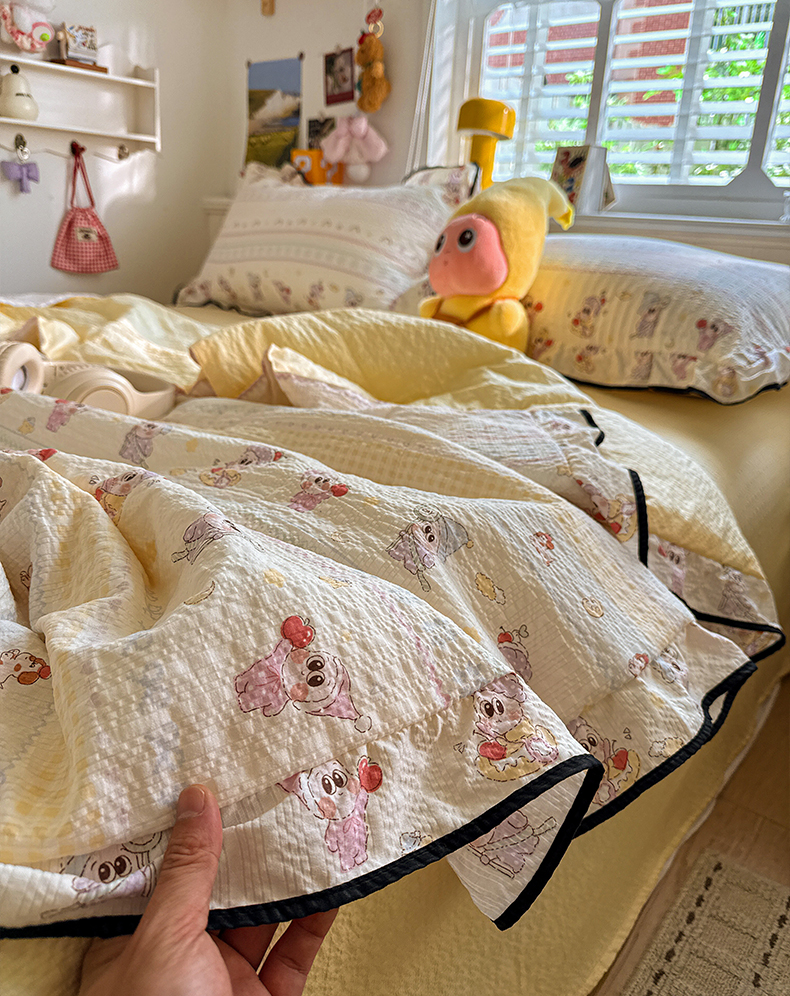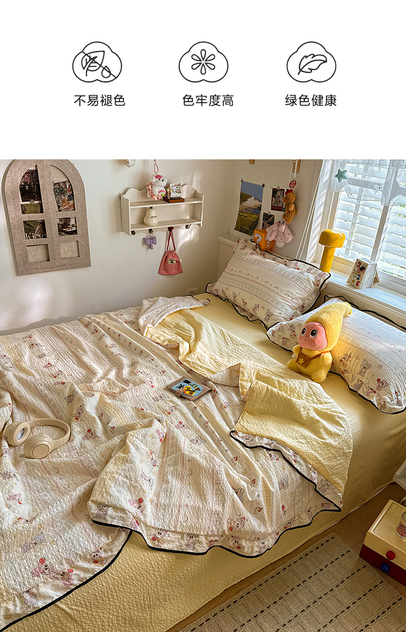 (总)水墨江南 2026新款泡芙纱花边夏被四件套,波点蝴蝶,蛋糕星仔,动感小狗,粉色小兔,红果果,可爱熊,快乐云朵,浪漫粉黛,猫猫聚会,奶酪星仔,幸运小狗,紫色小兔,hello星仔,组合图仅供参考