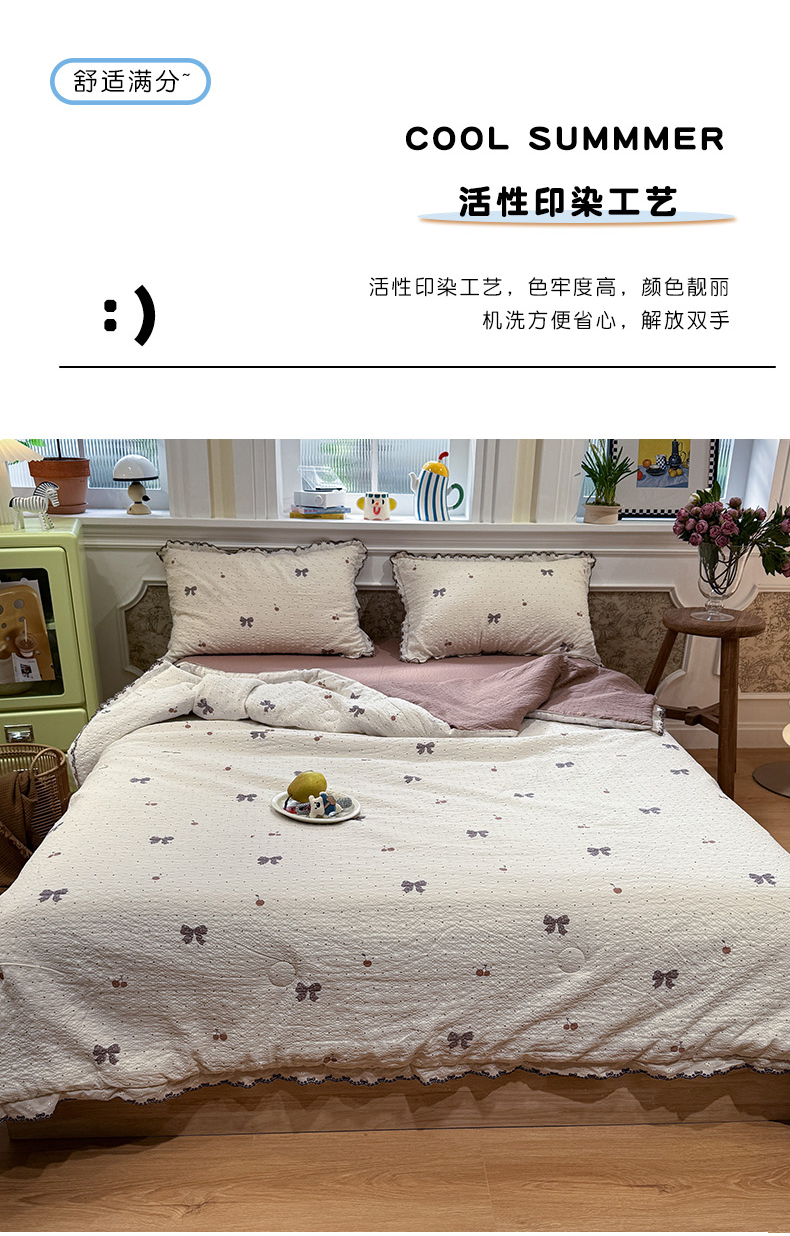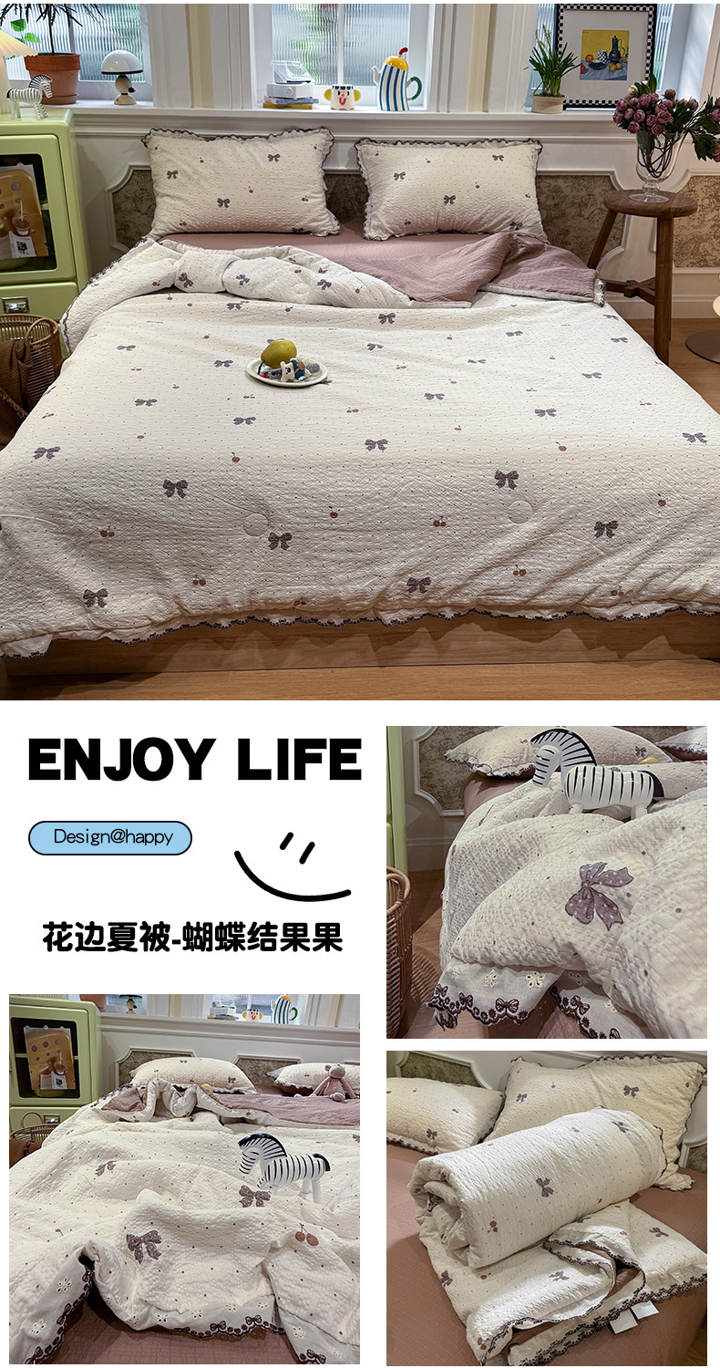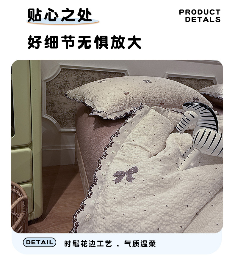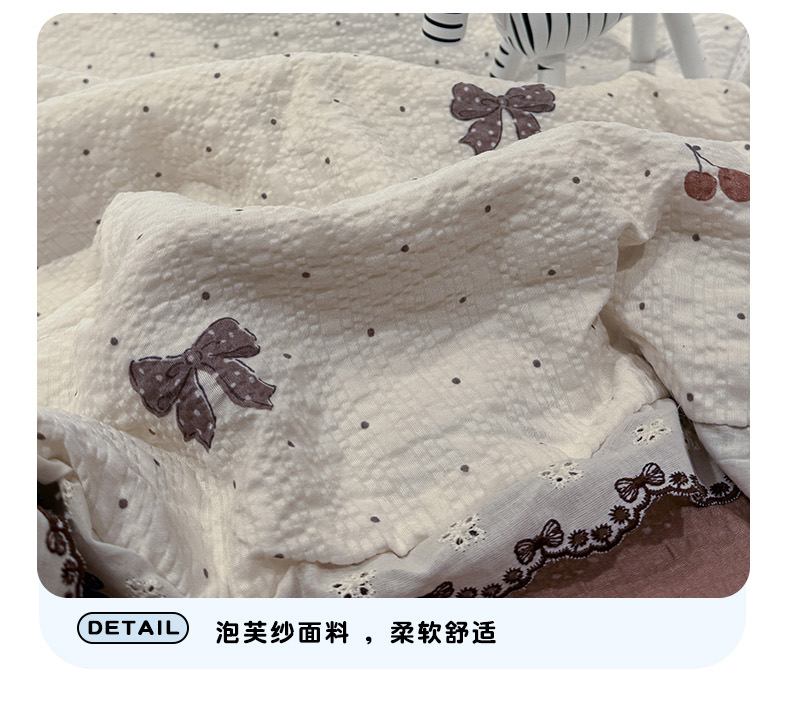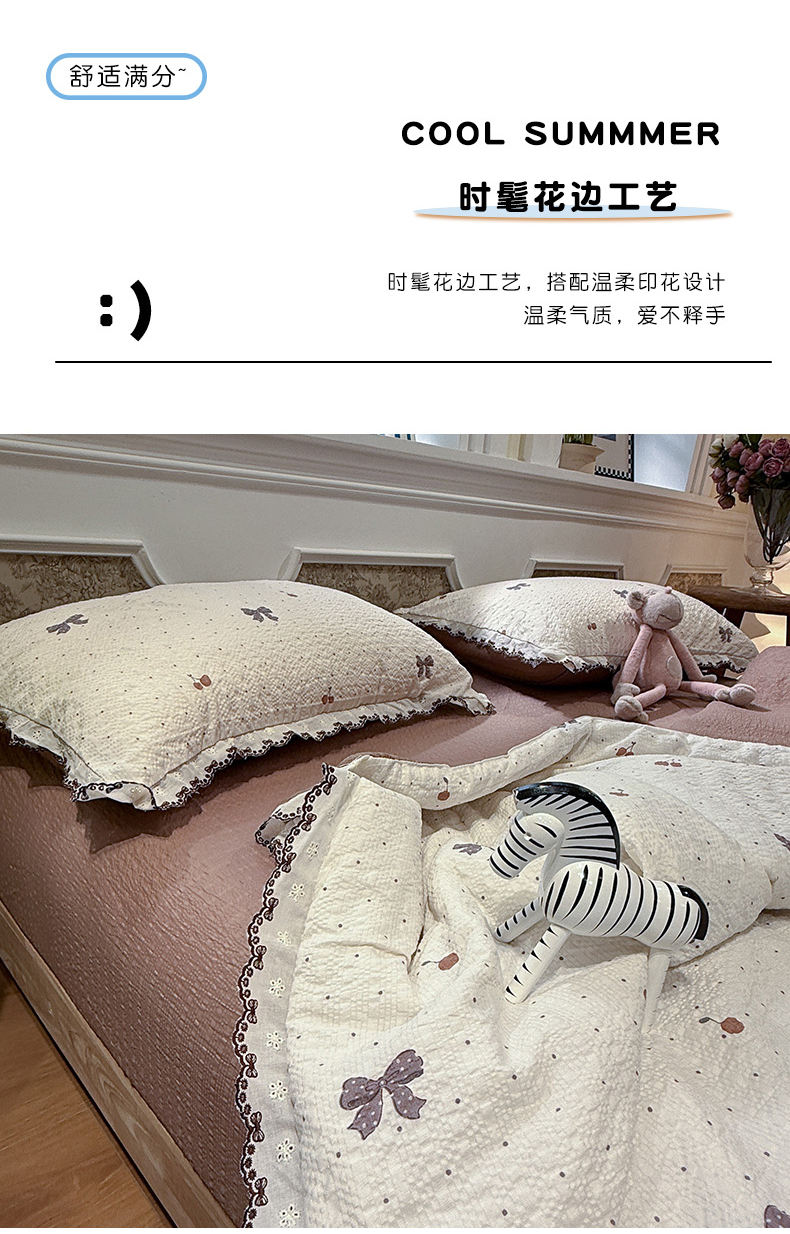 当前位置: 91家纺网 > 商品网购 > 床品套件 > 四件套 > 夏被四件套 > 水墨江南 2026新款泡芙纱全棉花边夏被四件套 花边夏被-蝴蝶结果果