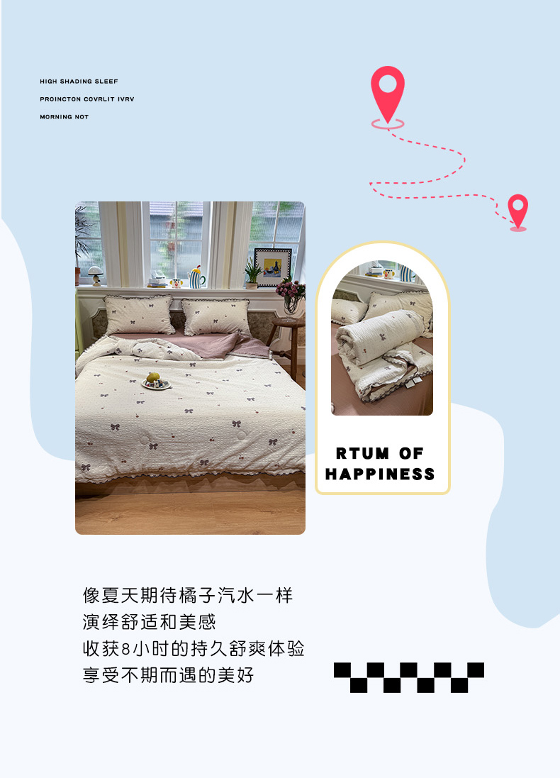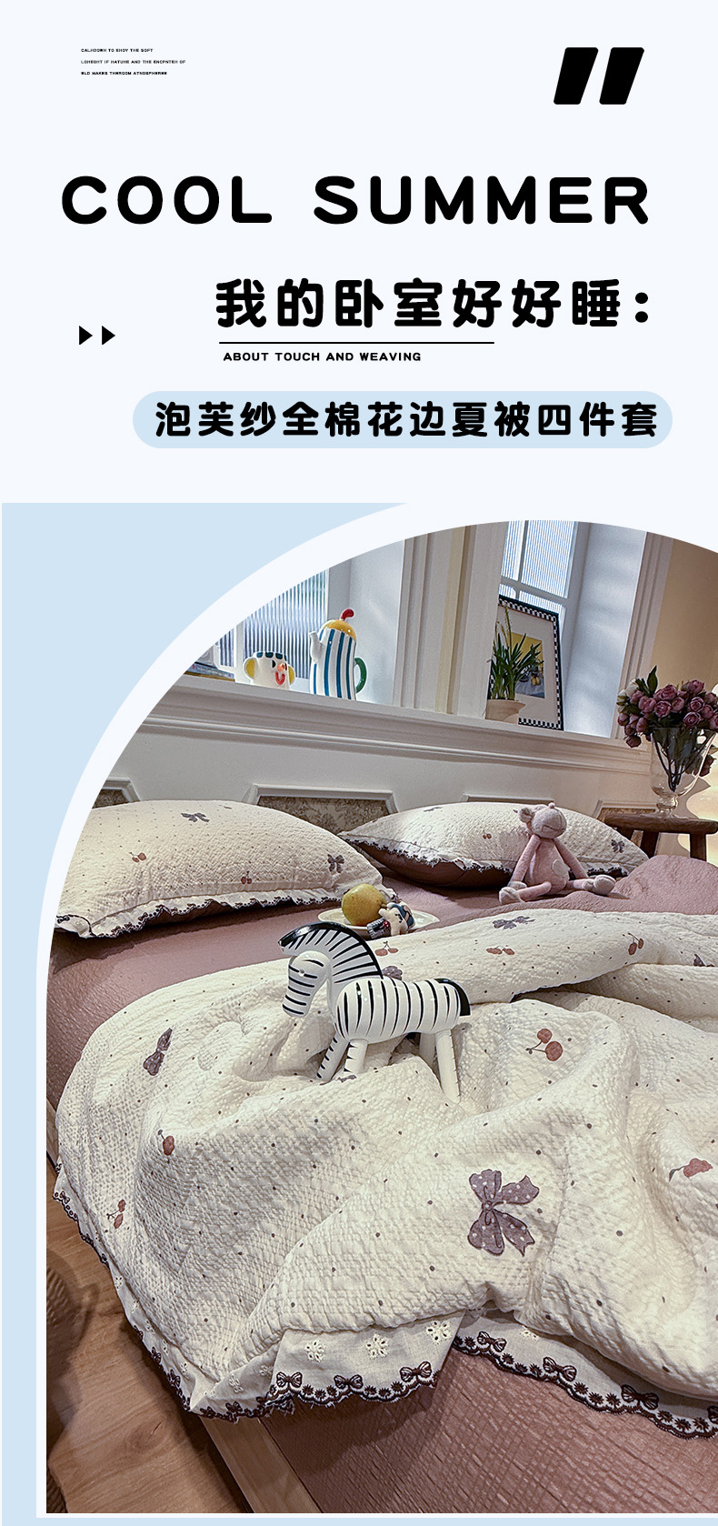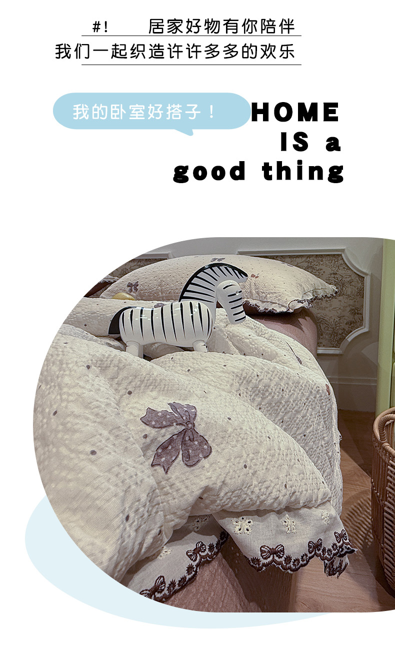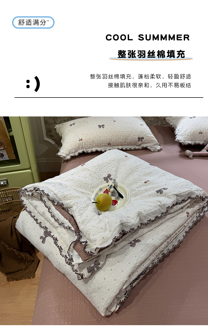 当前位置: 91家纺网 > 商品网购 > 床品套件 > 四件套 > 夏被四件套 > 水墨江南 2026新款泡芙纱全棉花边夏被四件套 花边夏被-蝴蝶结果果