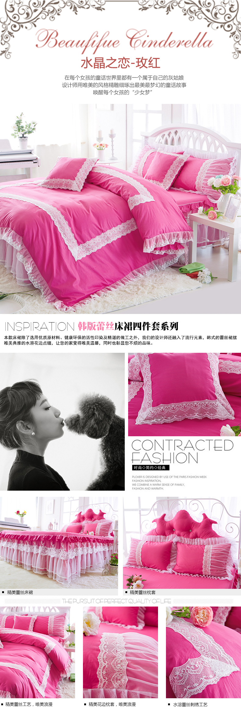 商品名称:菊上家纺——全棉133*72韩版四件套 水晶之恋 玫红
