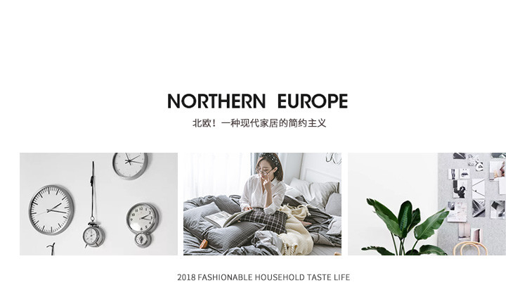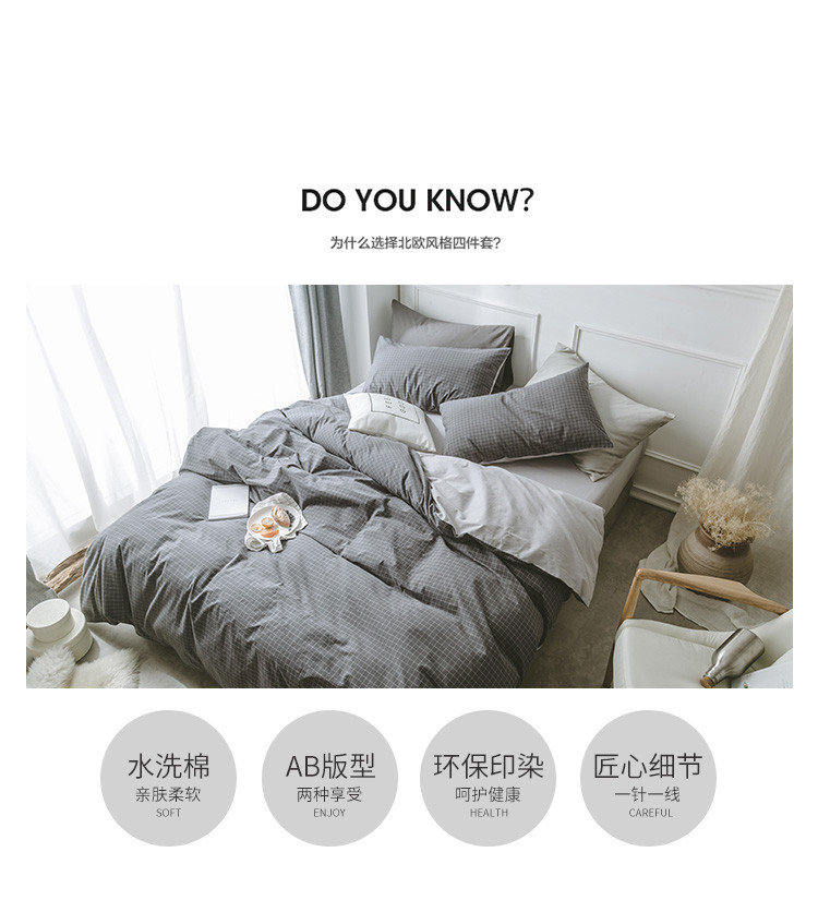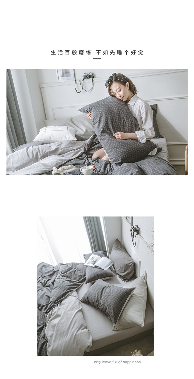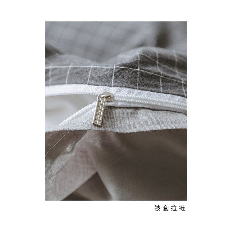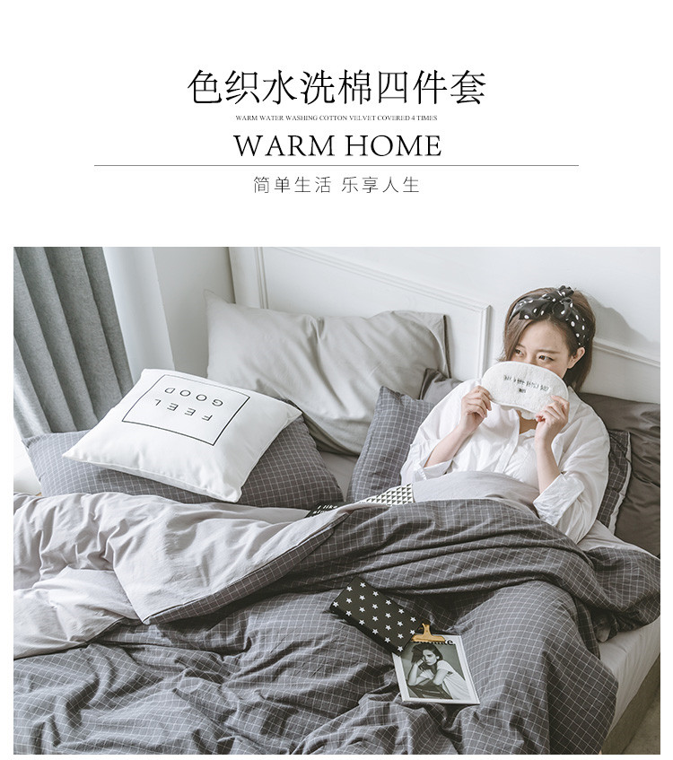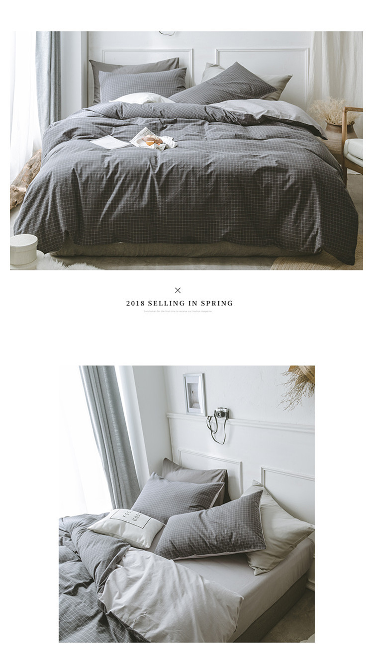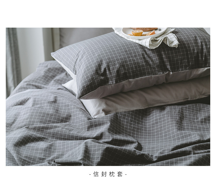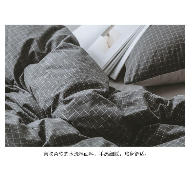 商品名称:早春全棉色织水洗套件模特图深灰格子