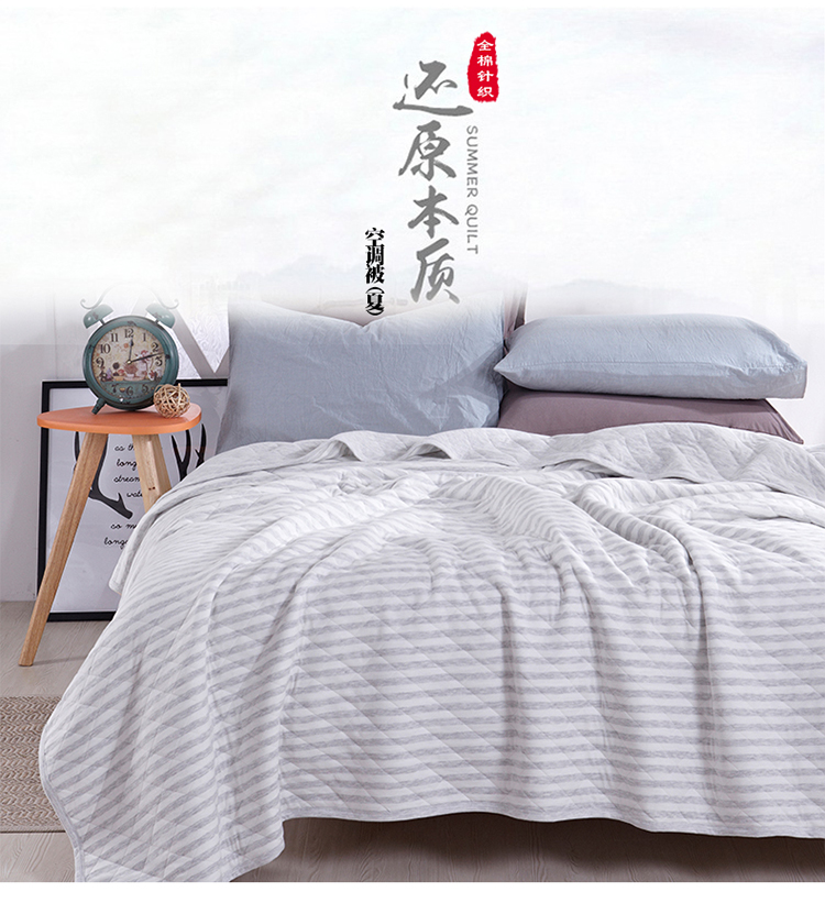 商品名称:琪琪阁家纺 全棉针织夏凉被宽条纹系列 浅灰条纹