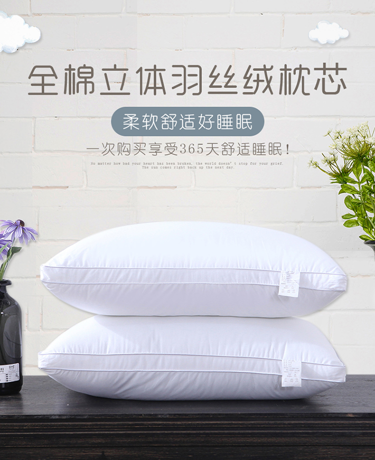 当前位置: 91家纺网 > 商品网购 > 枕头/枕芯/保健枕/颈椎枕 > 普通枕芯 > 仁宇枕业 枕芯全棉酒店立体纯白防雨布羽丝绒枕头
