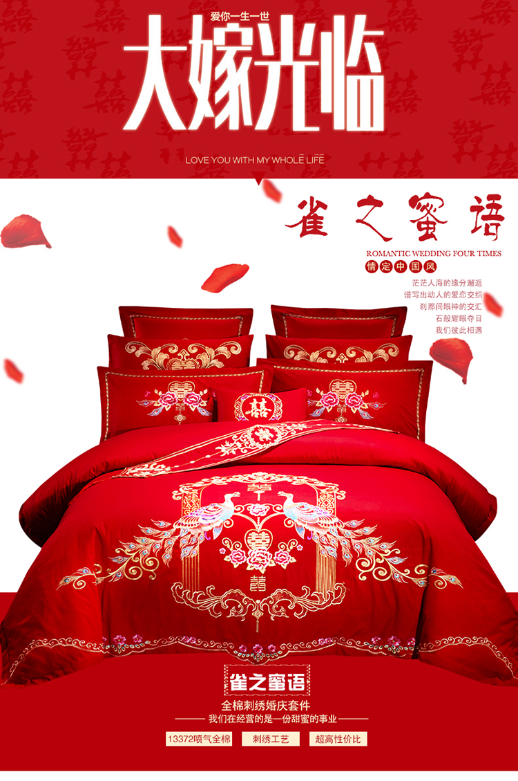 商品名称:慕她婚庆四件套大红色刺绣花全棉纯棉结婚六八十多件套雀之蜜语