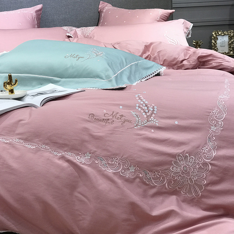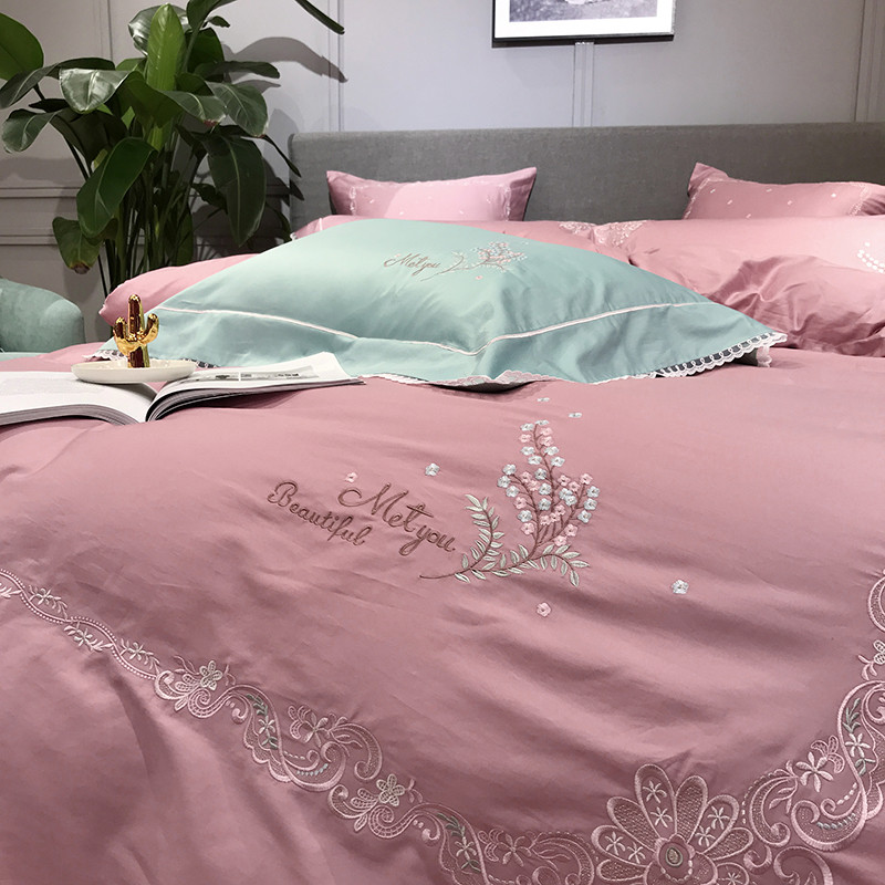 馨蕊家居 2018新款60s全棉磨毛四件套 优莲娜-藕粉