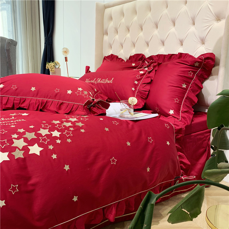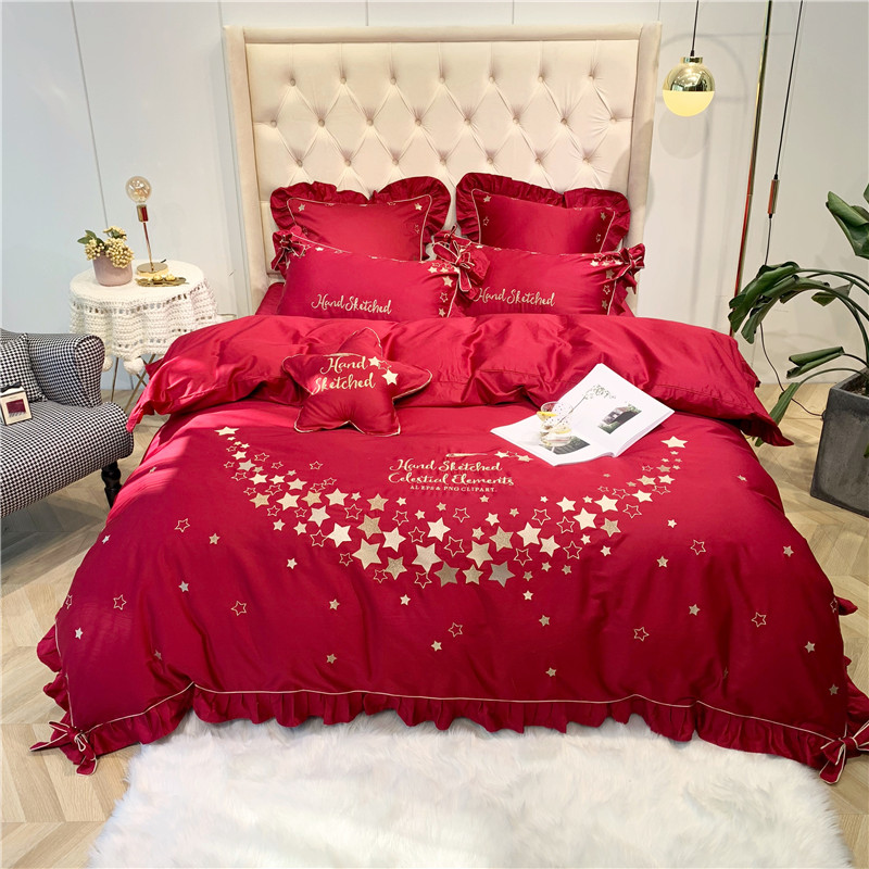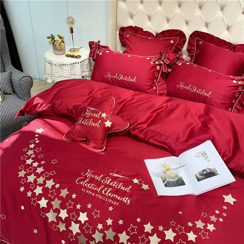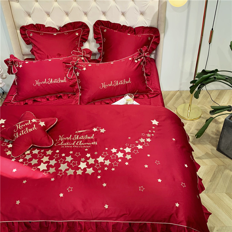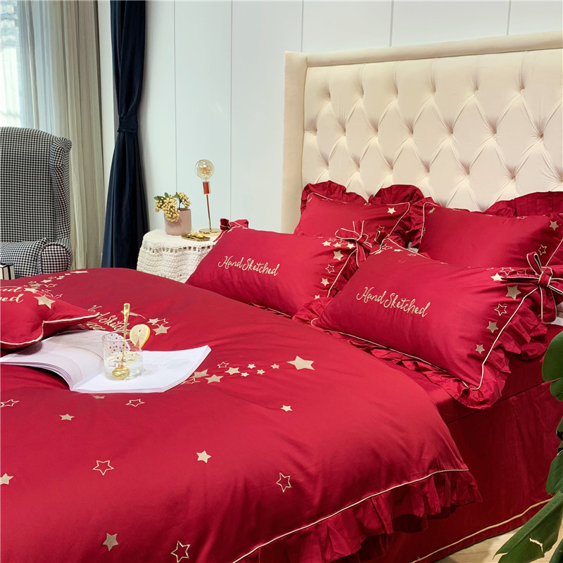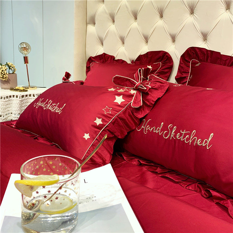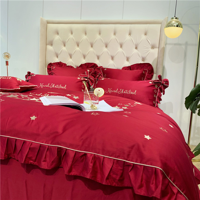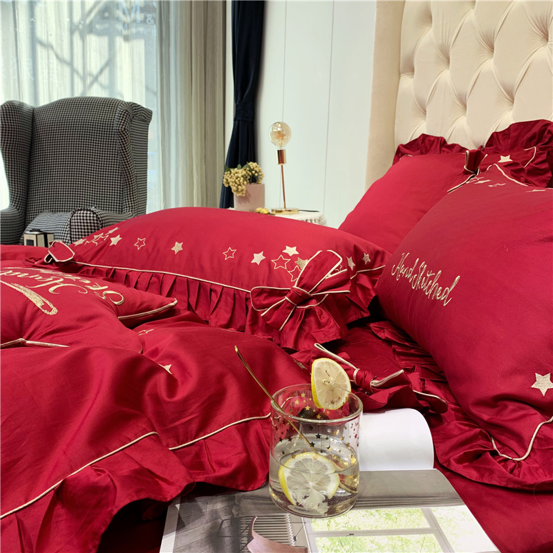 商品名称:馨蕊 2021年新款60s长绒棉绣花 星愿---温莎红