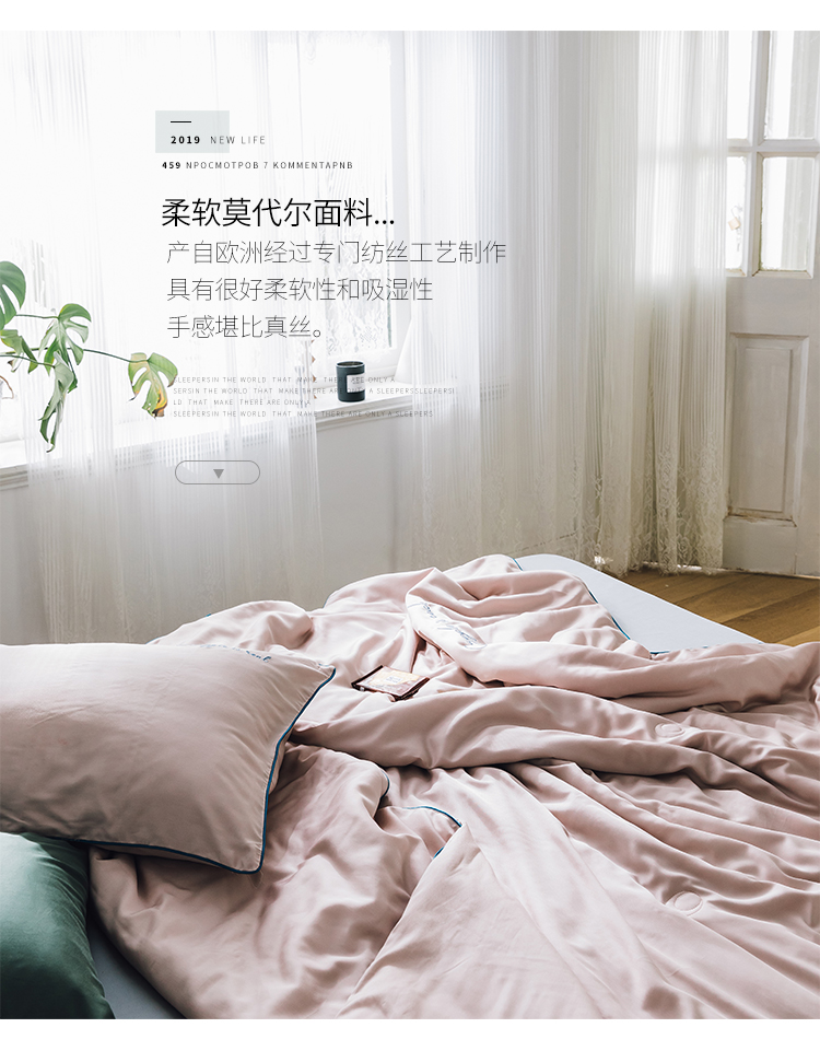 莱福仕家纺 2024 莫代尔刺绣系列夏被浅豆沙