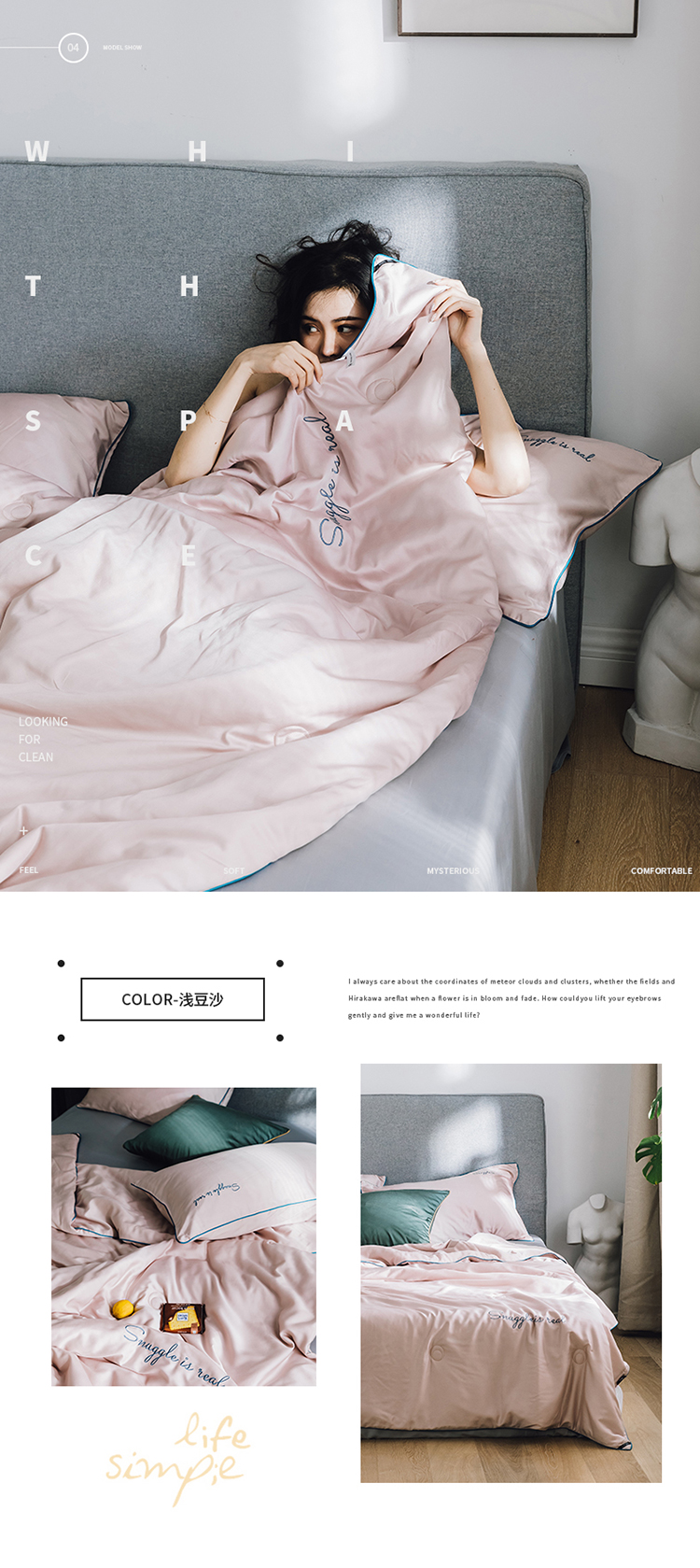 (总)莱福仕家纺 2025新款60支全棉磨毛10A中科抗菌被被子被芯,组合图仅供展示不可下单,富山白,蔷薇粉