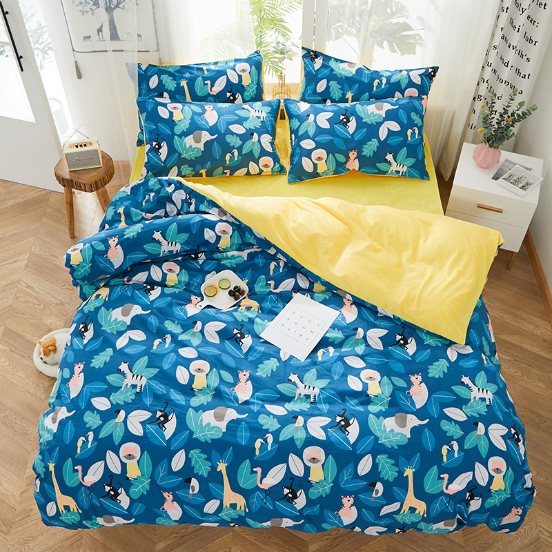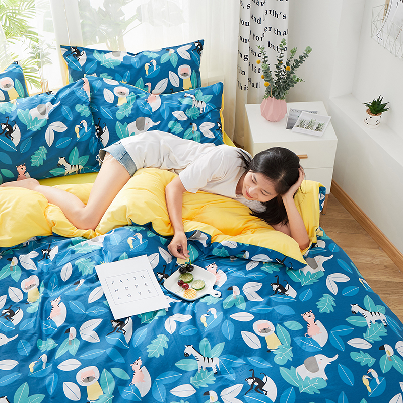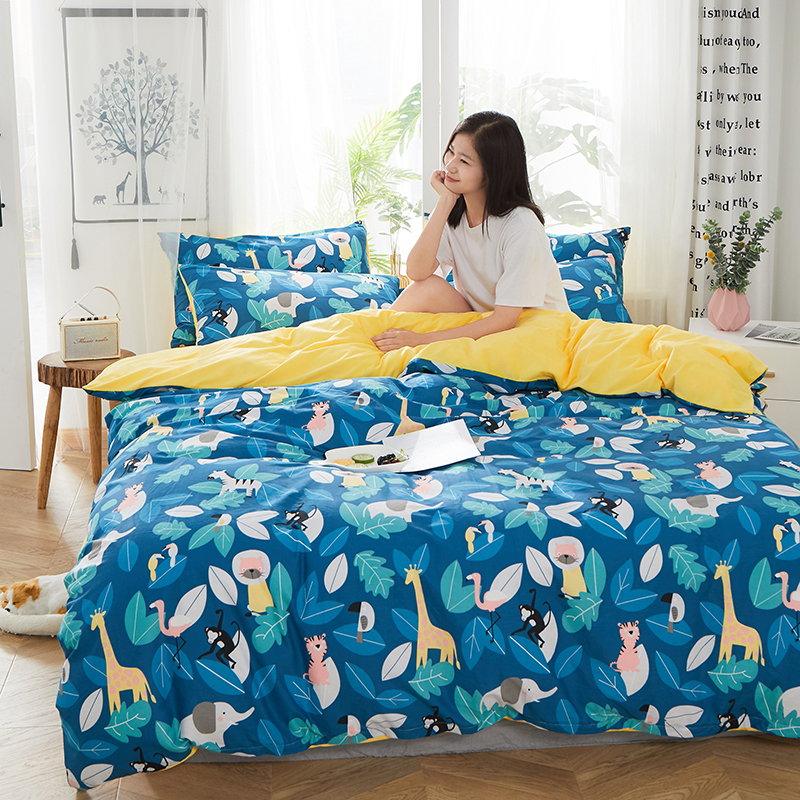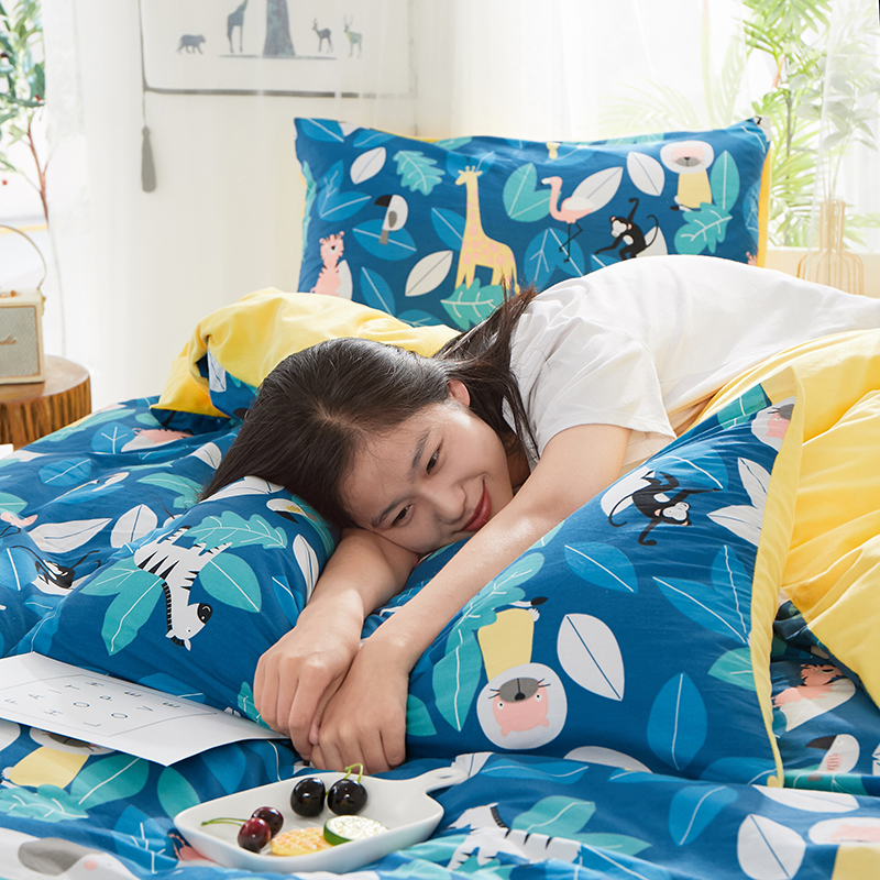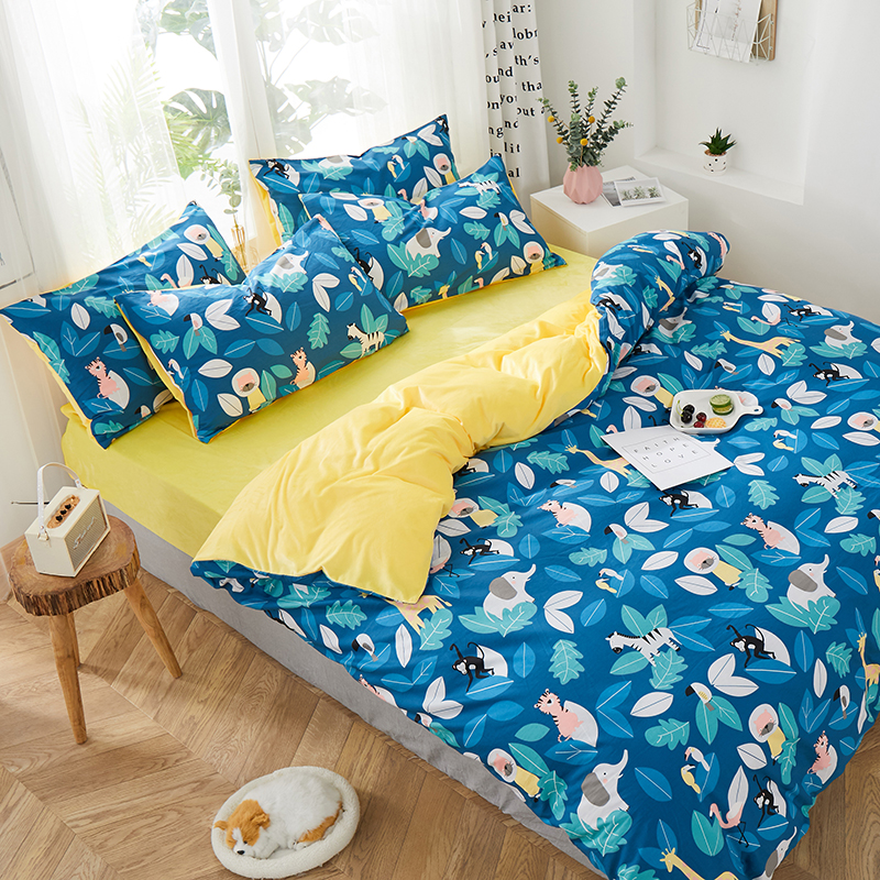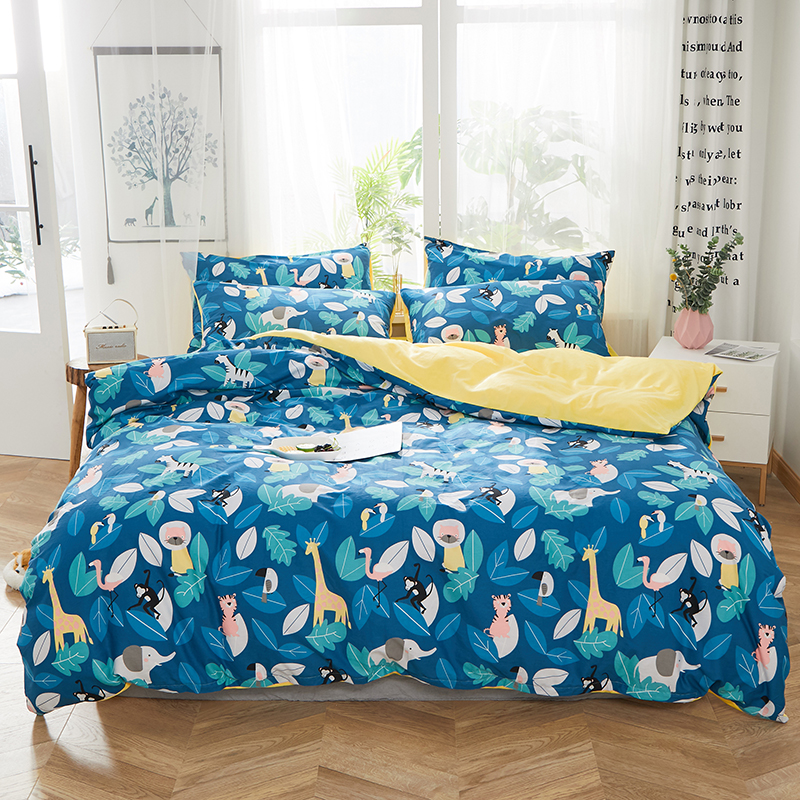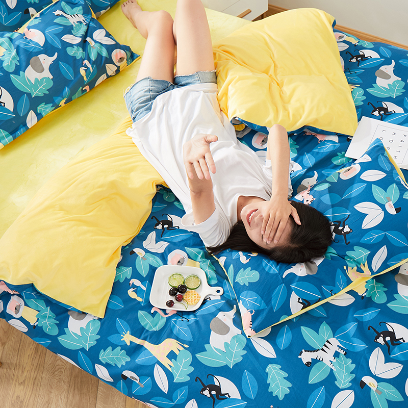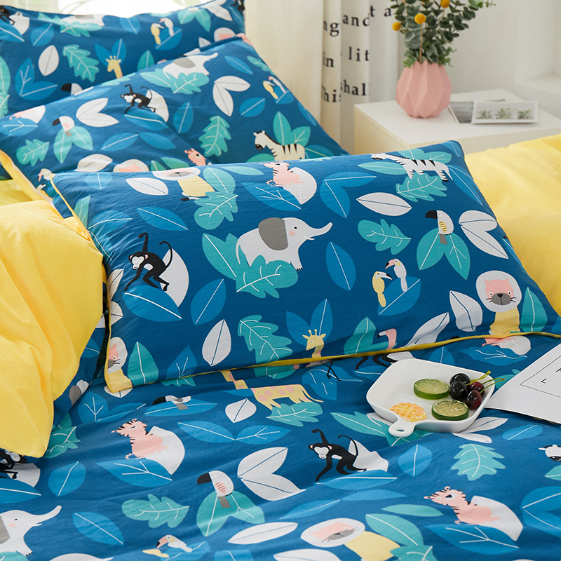 一米阳光 2019新款A棉B纯色绒四件套 动物派对