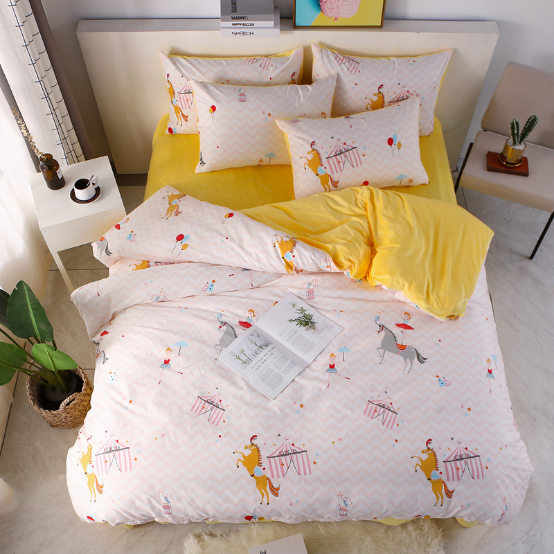 商品名称:一米阳光 2019新款A棉B纯色绒四件套 旋转木马
