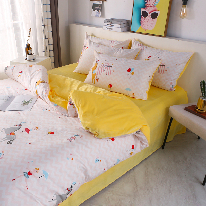 一米阳光 2019新款A棉B纯色绒四件套 旋转木马