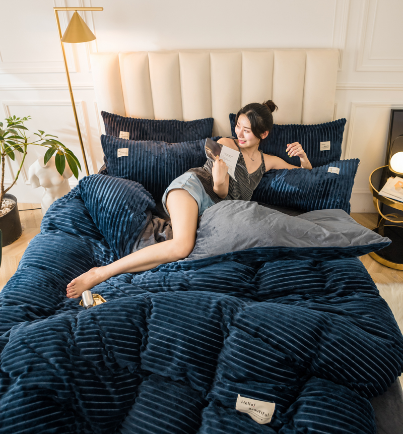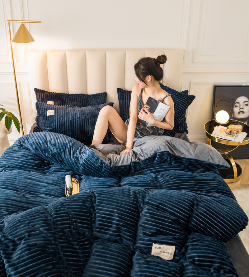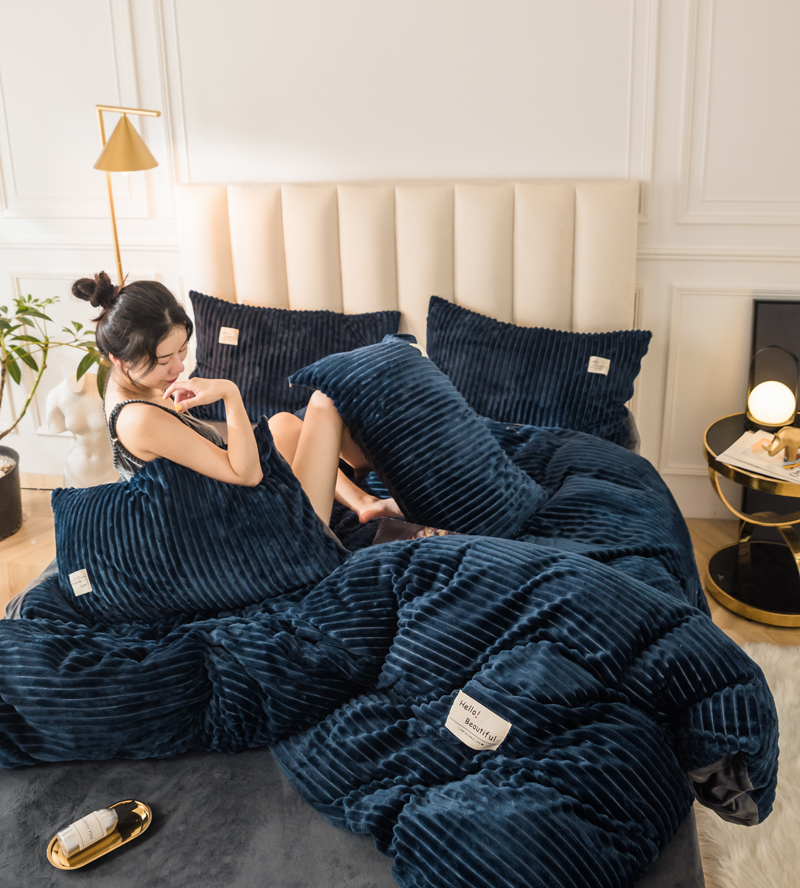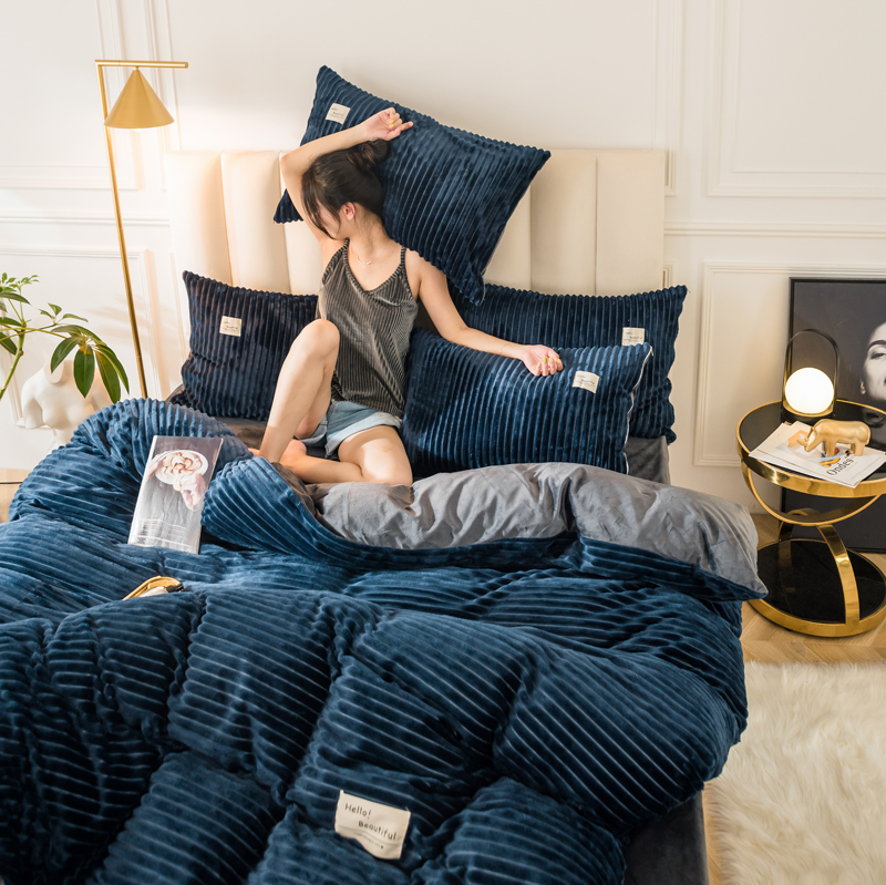 商品名称:澳洲羽 加厚魔法绒水晶绒法莱绒宝宝绒魔幻绒四件套 宝石蓝